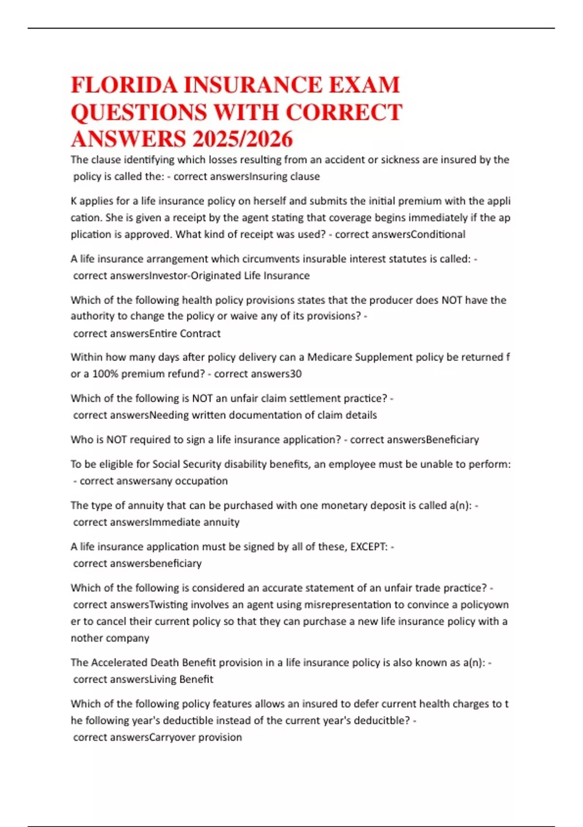 AcorrectAanswersFloridaALifeAandAHealthAInsuranceAGuarantyAAssociation
