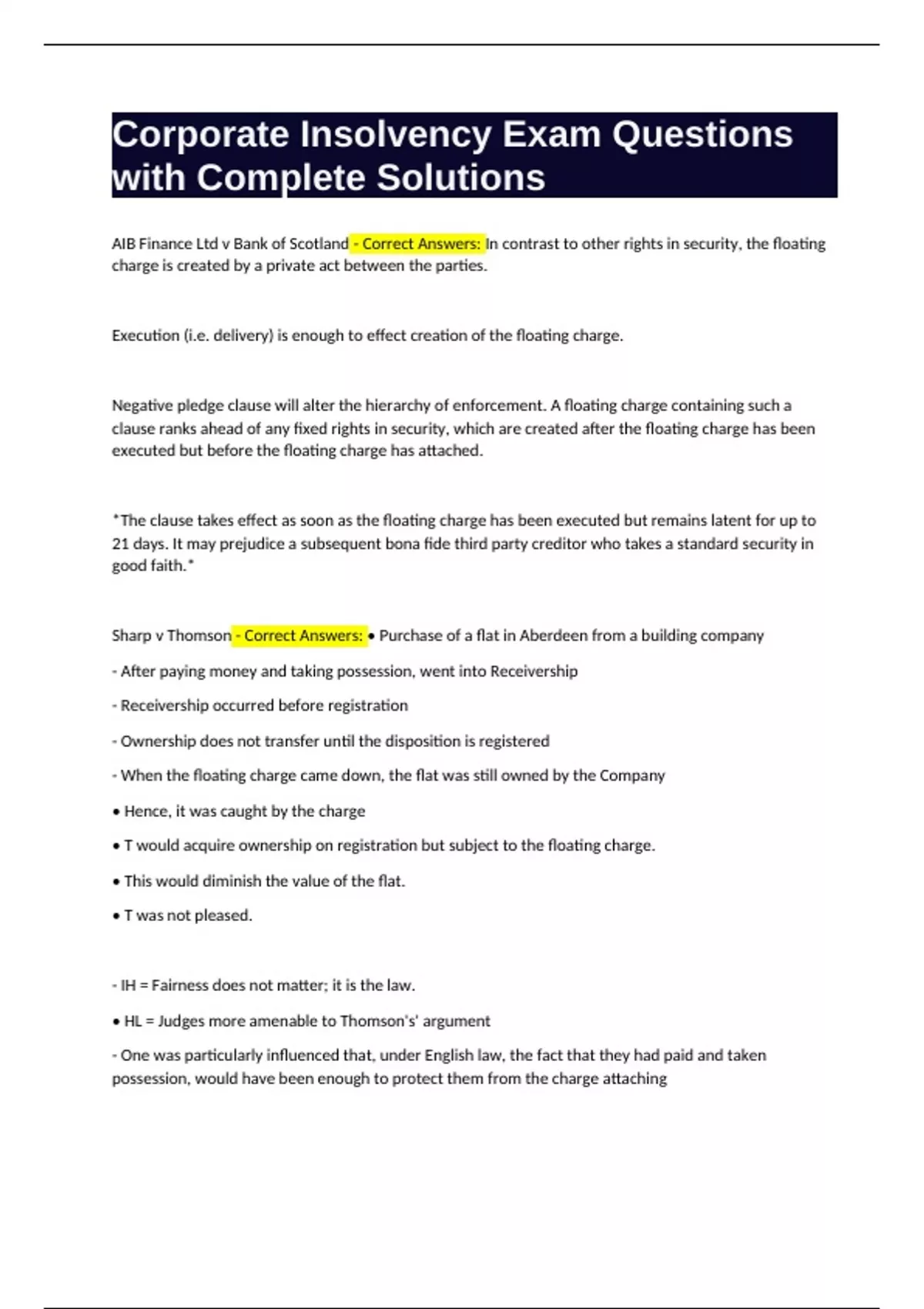AIB Finance Ltd v Bank of Scotland - Correct Answers: In contrast to other rights in security, the floating