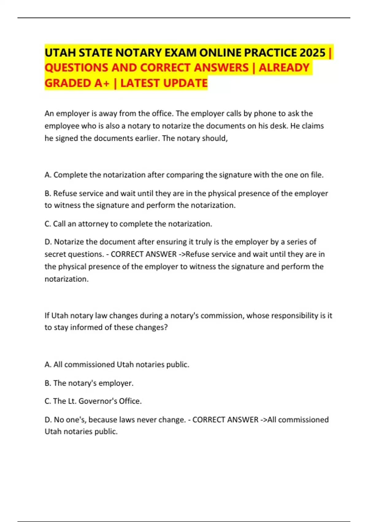 QUESTIONS AND CORRECT ANSWERS | ALREADY
