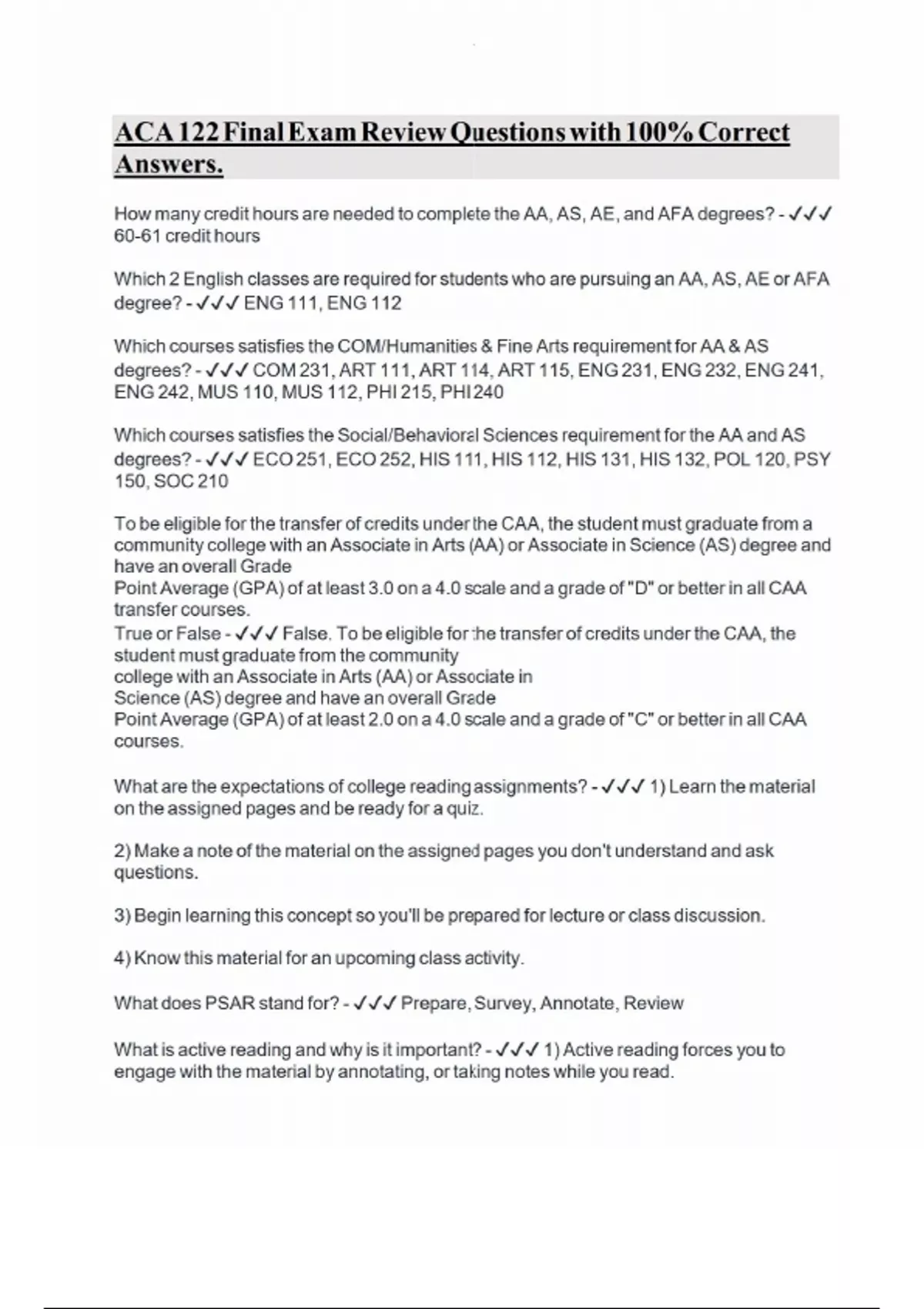 ACA 122 Final Exam Review Questions with 100% Correct Answers.ACA 122 Final Exam Review Questions with 100% Correct Answers.