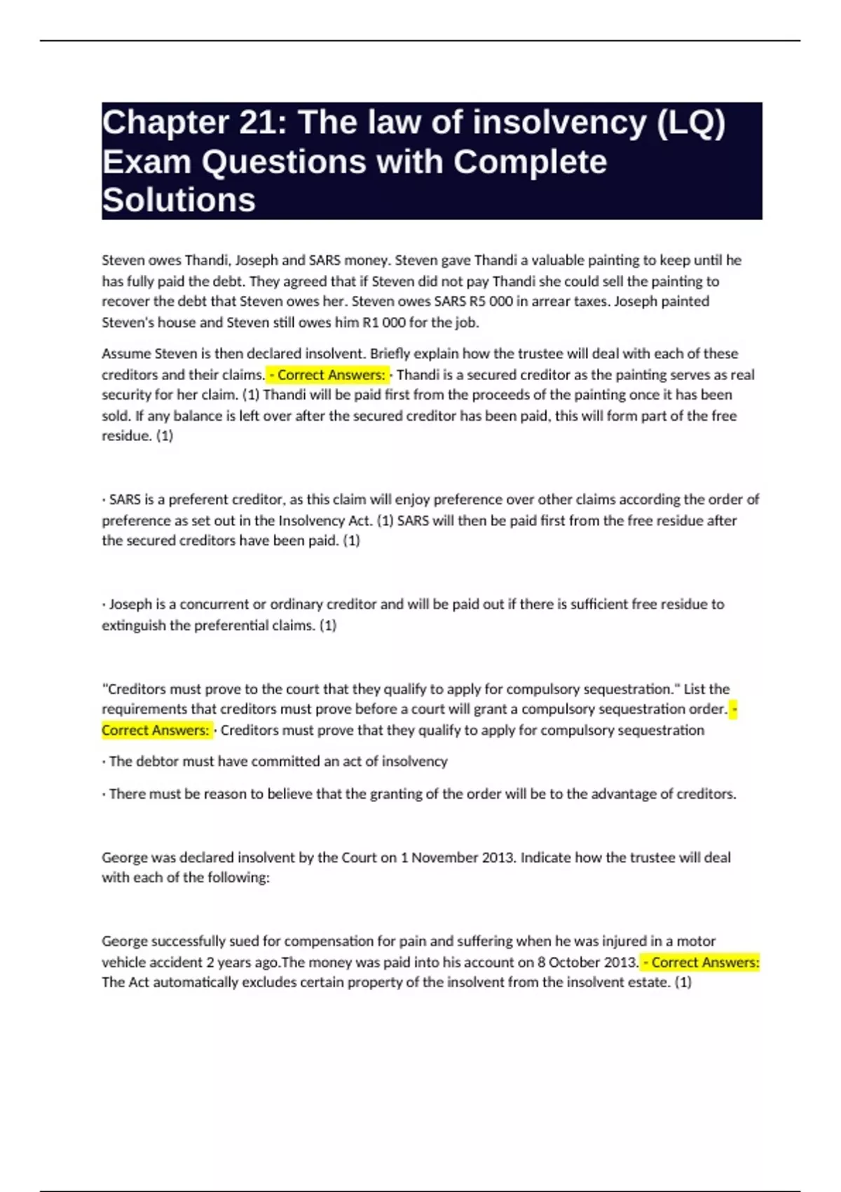 creditors and their claims. - Correct Answers: · Thandi is a secured creditor as the painting serves as real