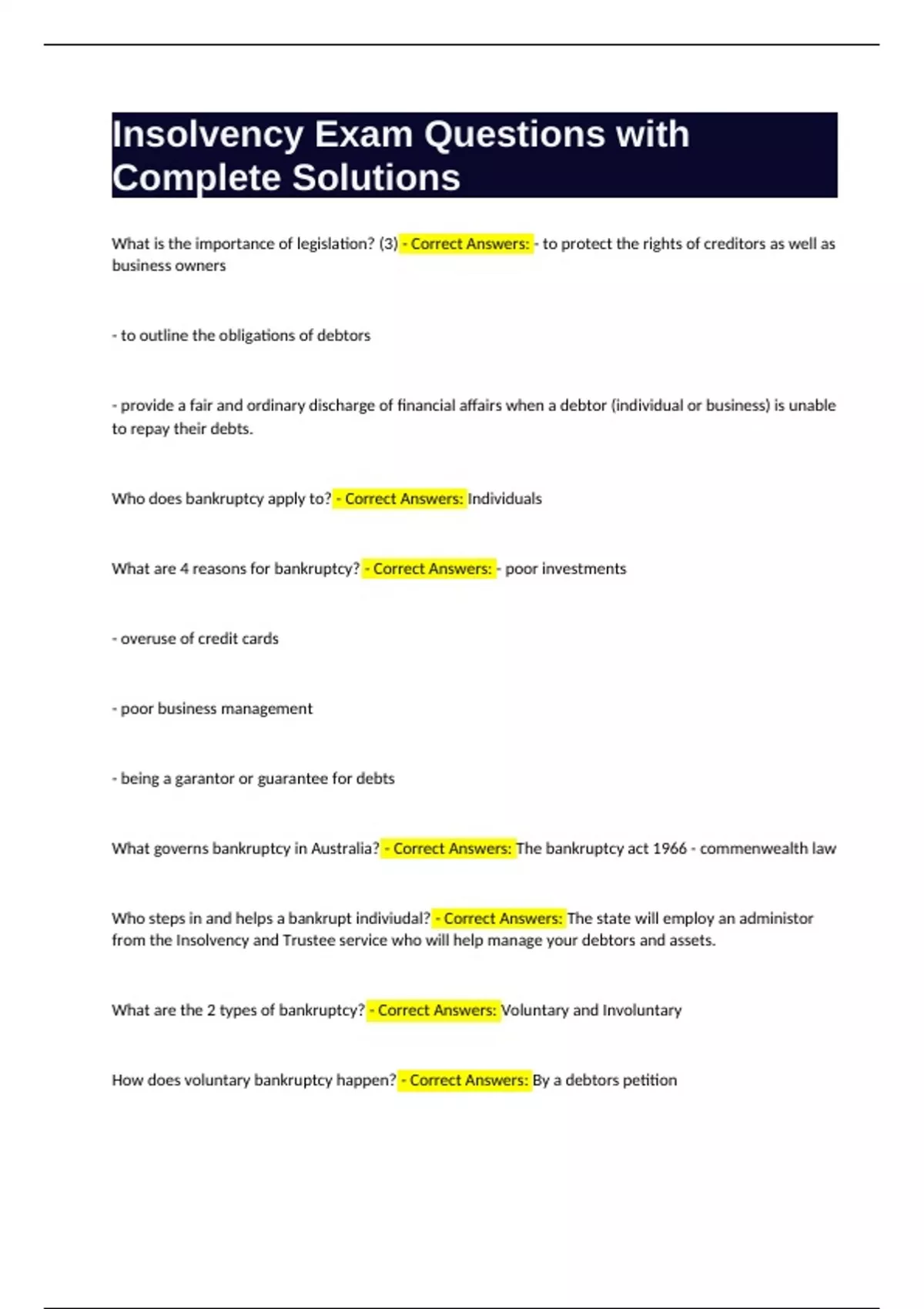 What is the importance of legislation? (3) - Correct Answers: - to protect the rights of creditors as well as