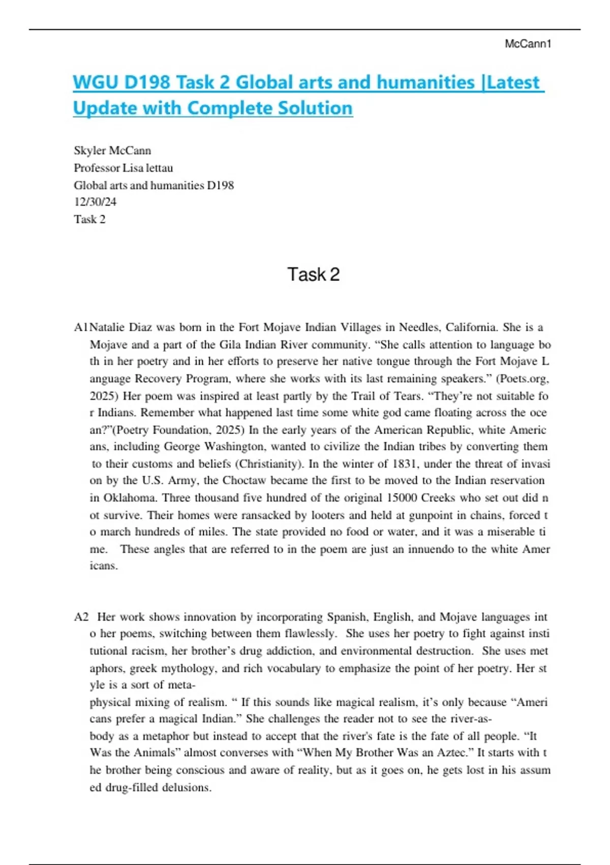 WGU D198 Task 2 Global arts and humanities |Latest Update with Complete Solution