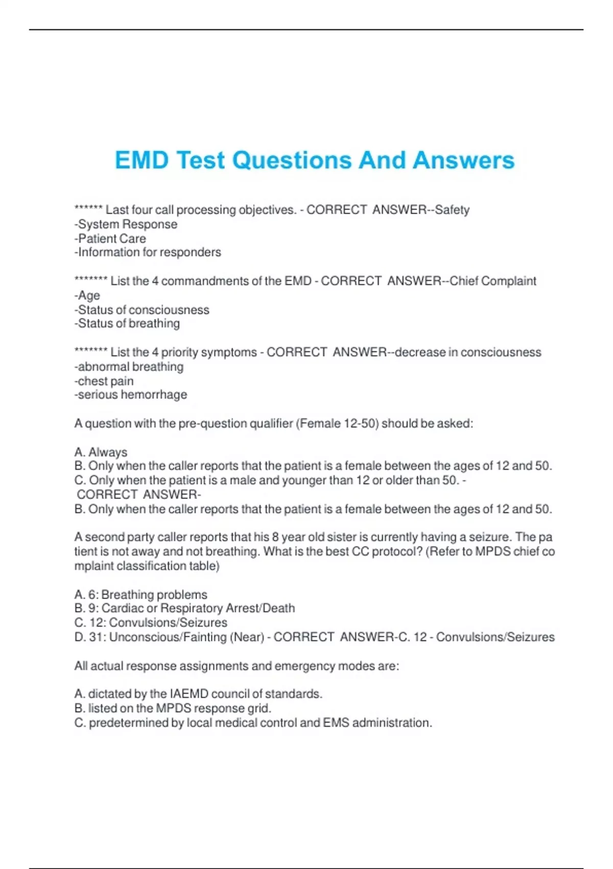 *******vListvthev4vcommandmentsvofvthevEMDv-vCORRECTvvANSWER--ChiefvComplaint