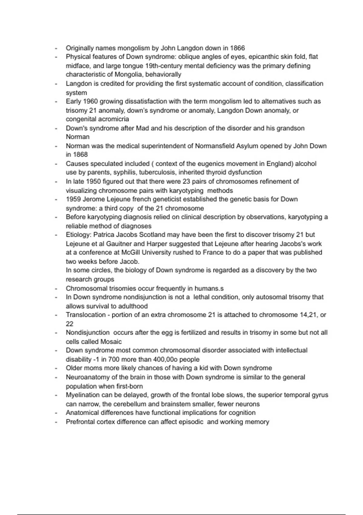 Basic information on the science and history of Down syndrome which were taken in my developmental disability class.