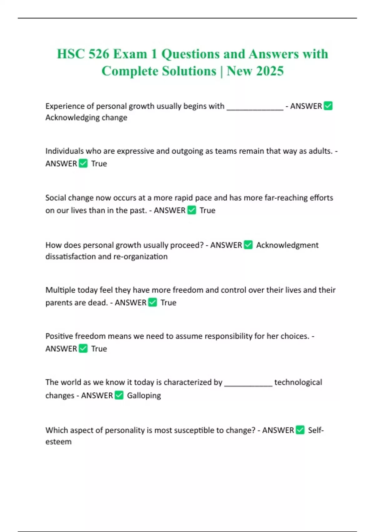 HSC 526 Exam 1 Questions and Answers with Complete Solutions | New 2025