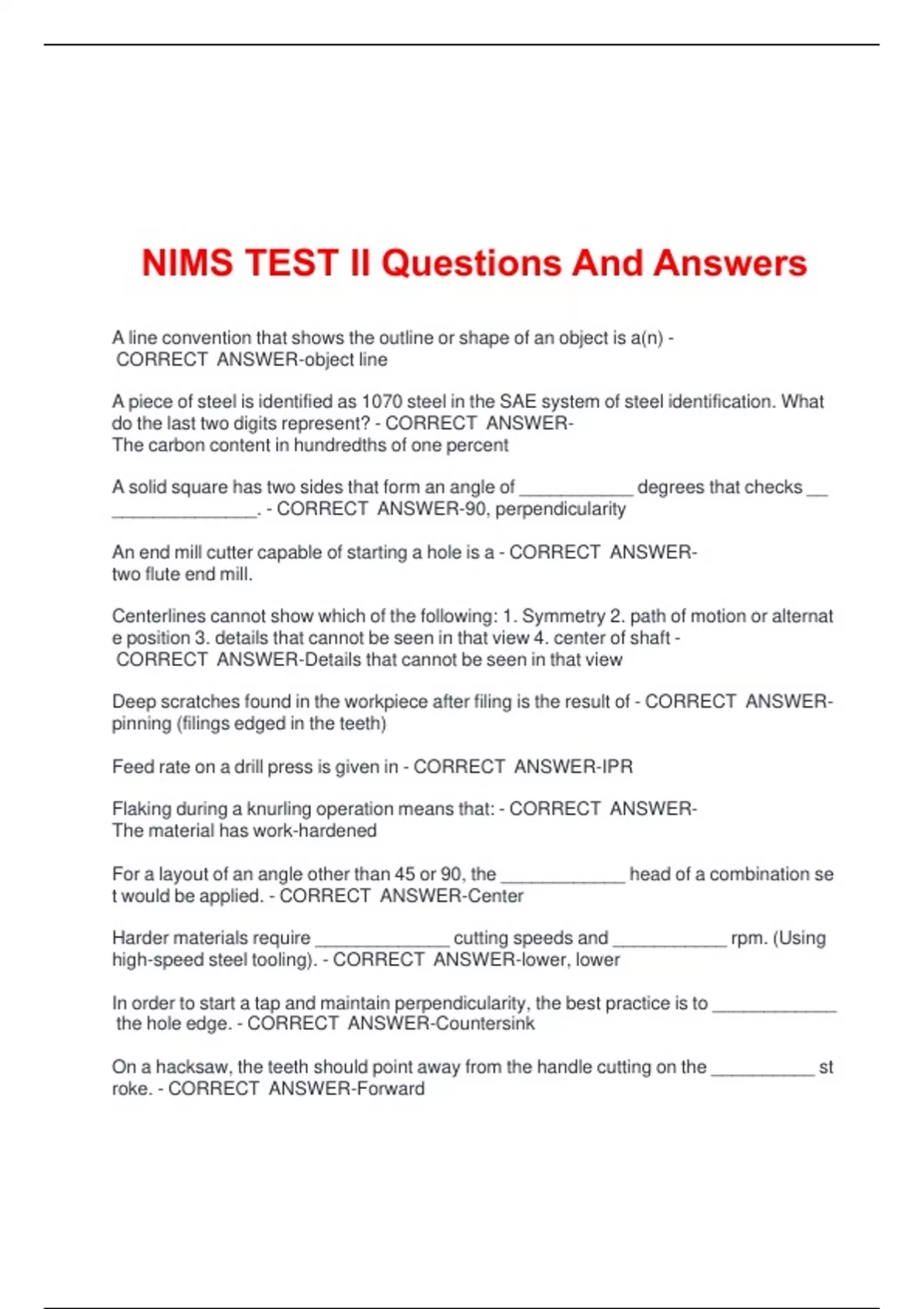 NIMS TEST II Questions And Answers NIMS TEST II Questions And Answers NIMS TEST II Questions And Answers