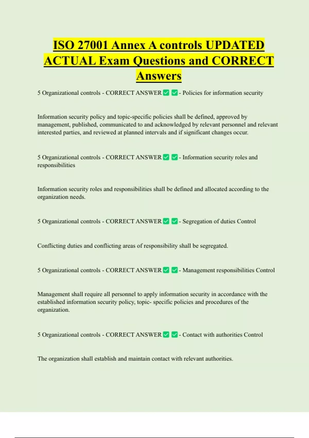 5 Organizational controls - CORRECT ANSWER - Policies for information security