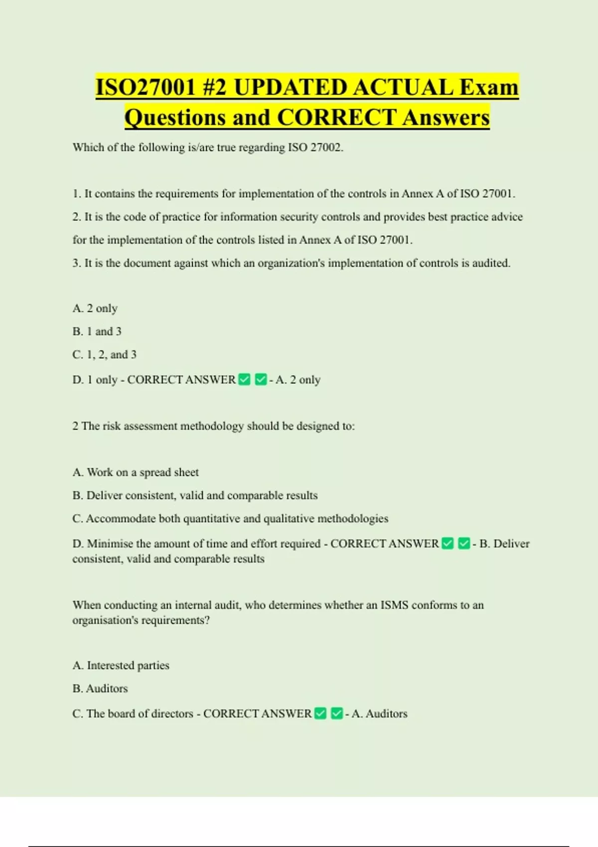 ISO27001 #2 UPDATED ACTUAL Exam Questions and CORRECT Answers