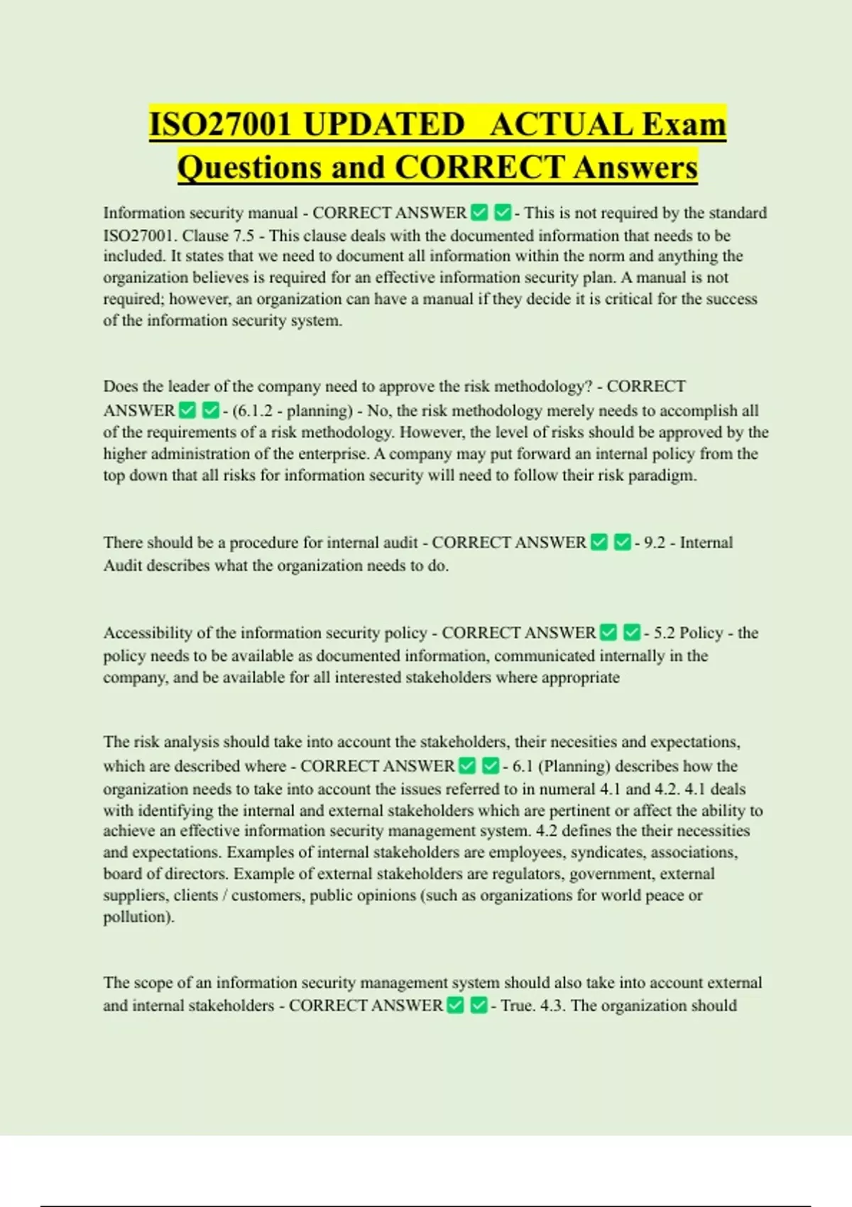 Information security manual - CORRECT ANSWER - This is not required by the standard