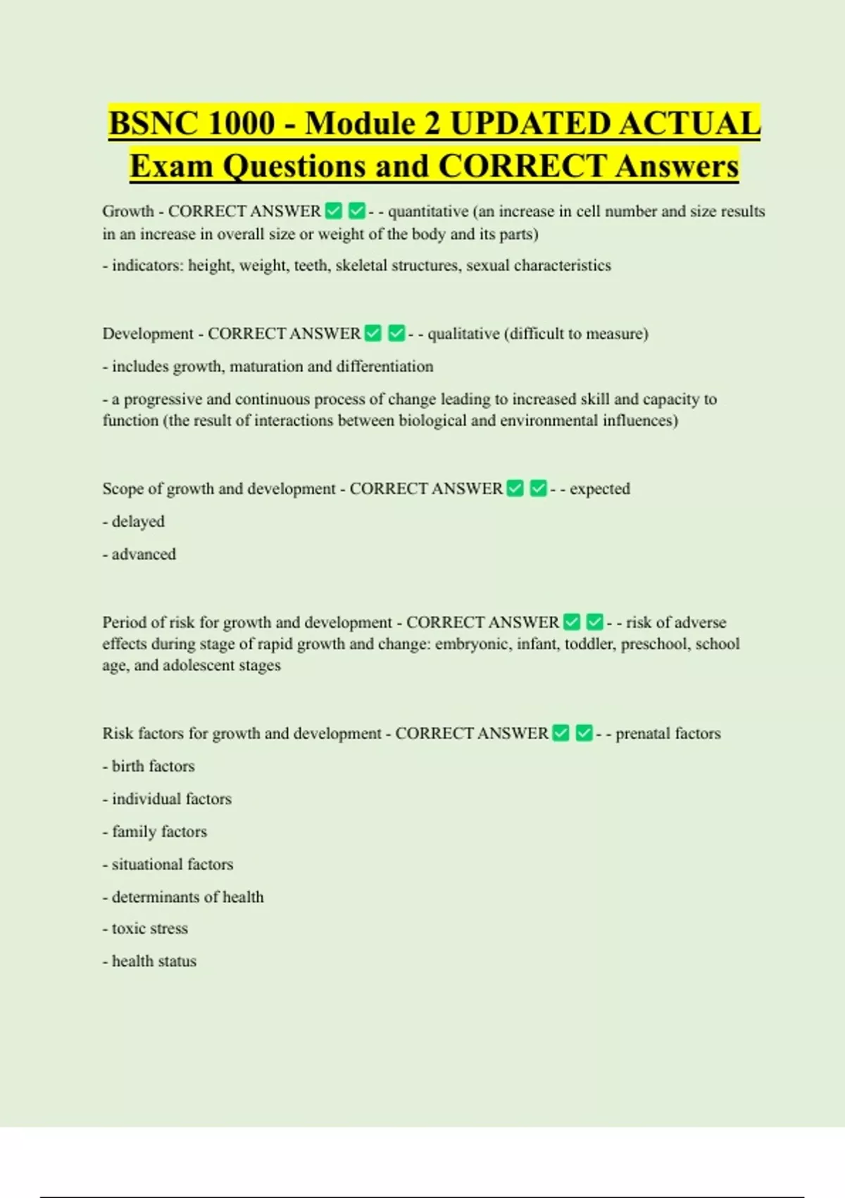 Scope of growth and development - CORRECT ANSWER - - expected