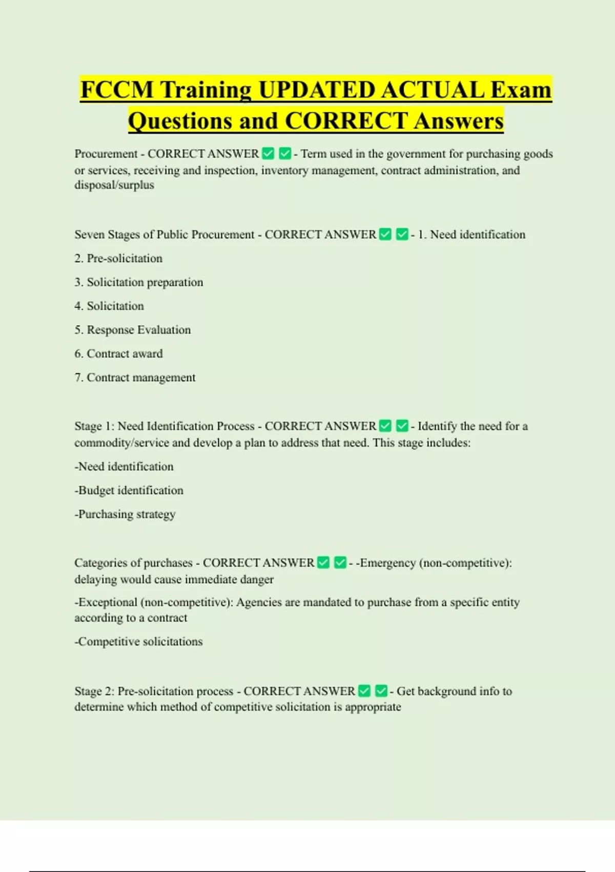 Seven Stages of Public Procurement - CORRECT ANSWER - 1. Need identification