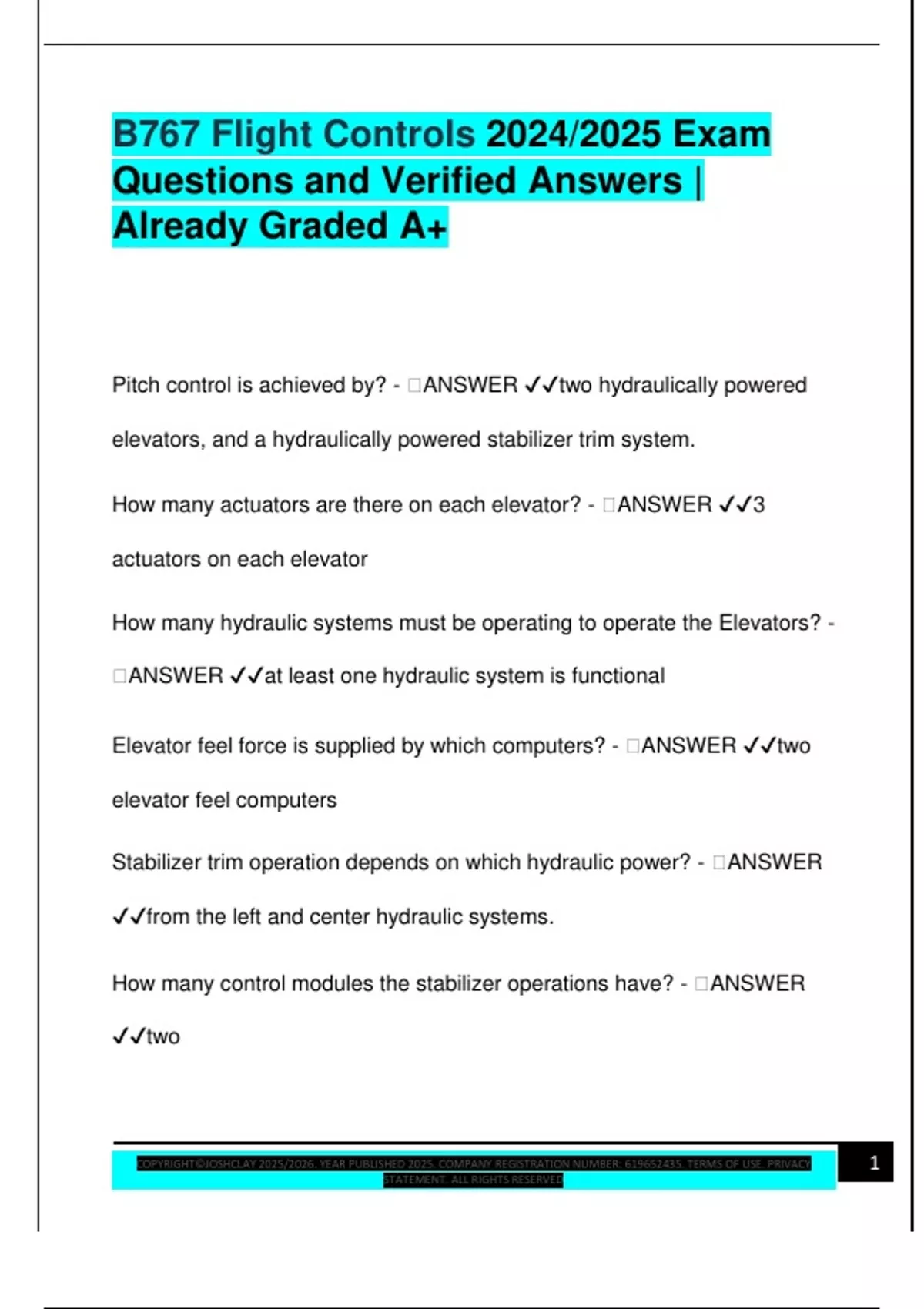 B767 Flight Controls 2024/2025 Exam Questions and Verified Answers | Already Graded A+