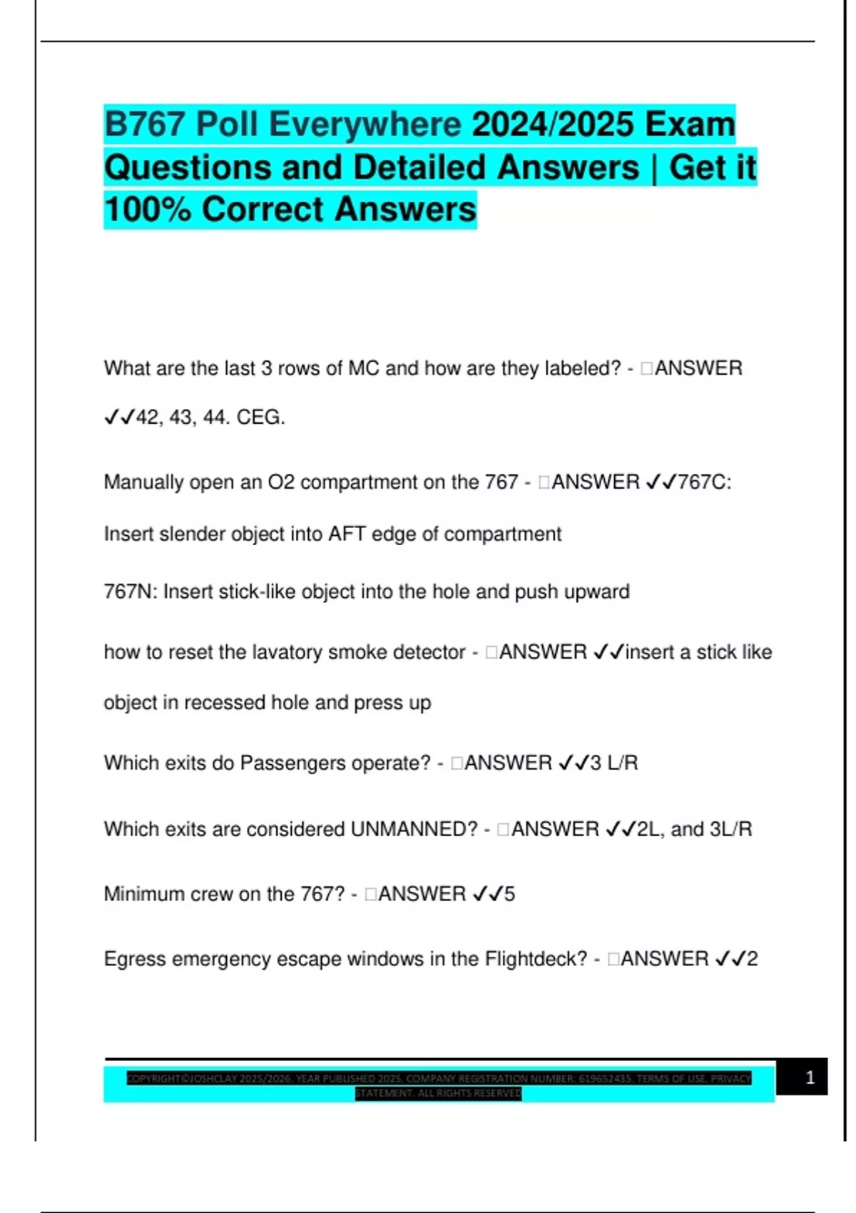 B767 Poll Everywhere 2024/2025 Exam Questions and Detailed Answers | Get it 100% Correct Answers