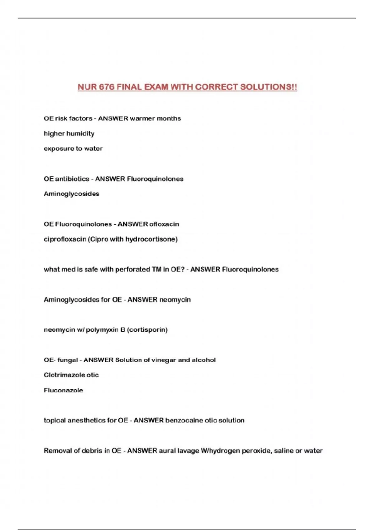 NUR 676 FINAL EXAM WITH CORRECT SOLUTIONS!!...