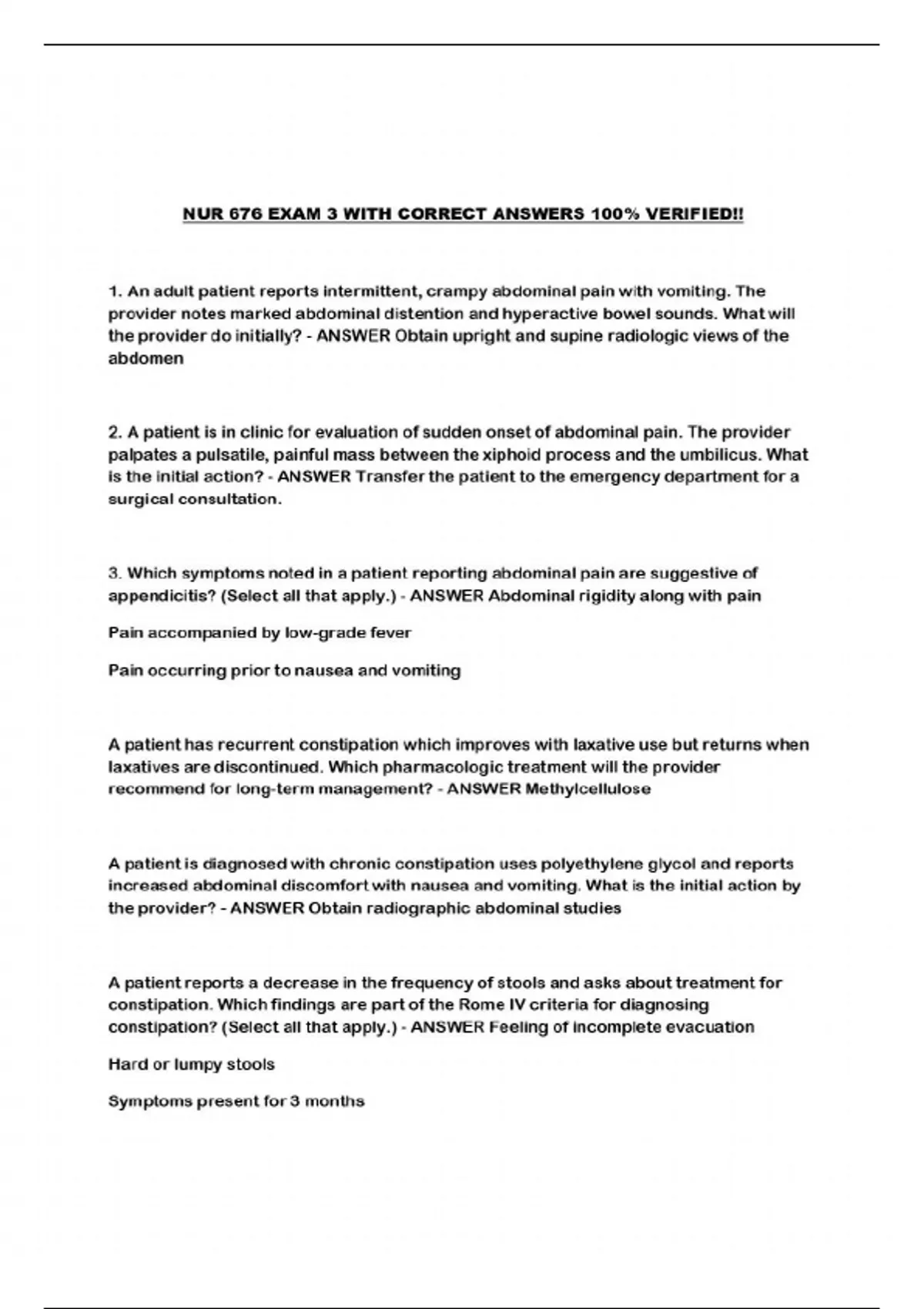 NUR 676 EXAM 3 WITH CORRECT ANSWERS 100% VERIFIED!!...