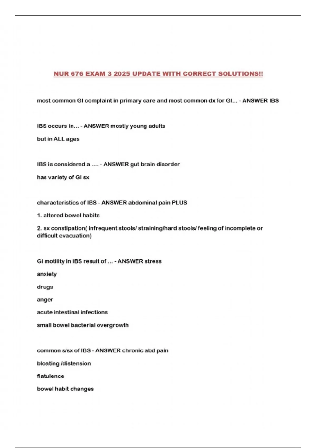 NUR 676 EXAM 3 2025 UPDATE WITH CORRECT SOLUTIONS!!