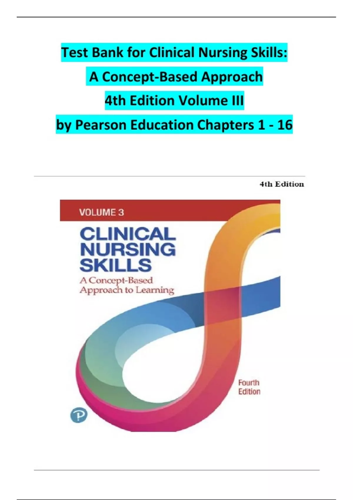 ,Test Bank for Clinical Nursing Skills: A Concept-Based Approach 4th Edition Pearson
