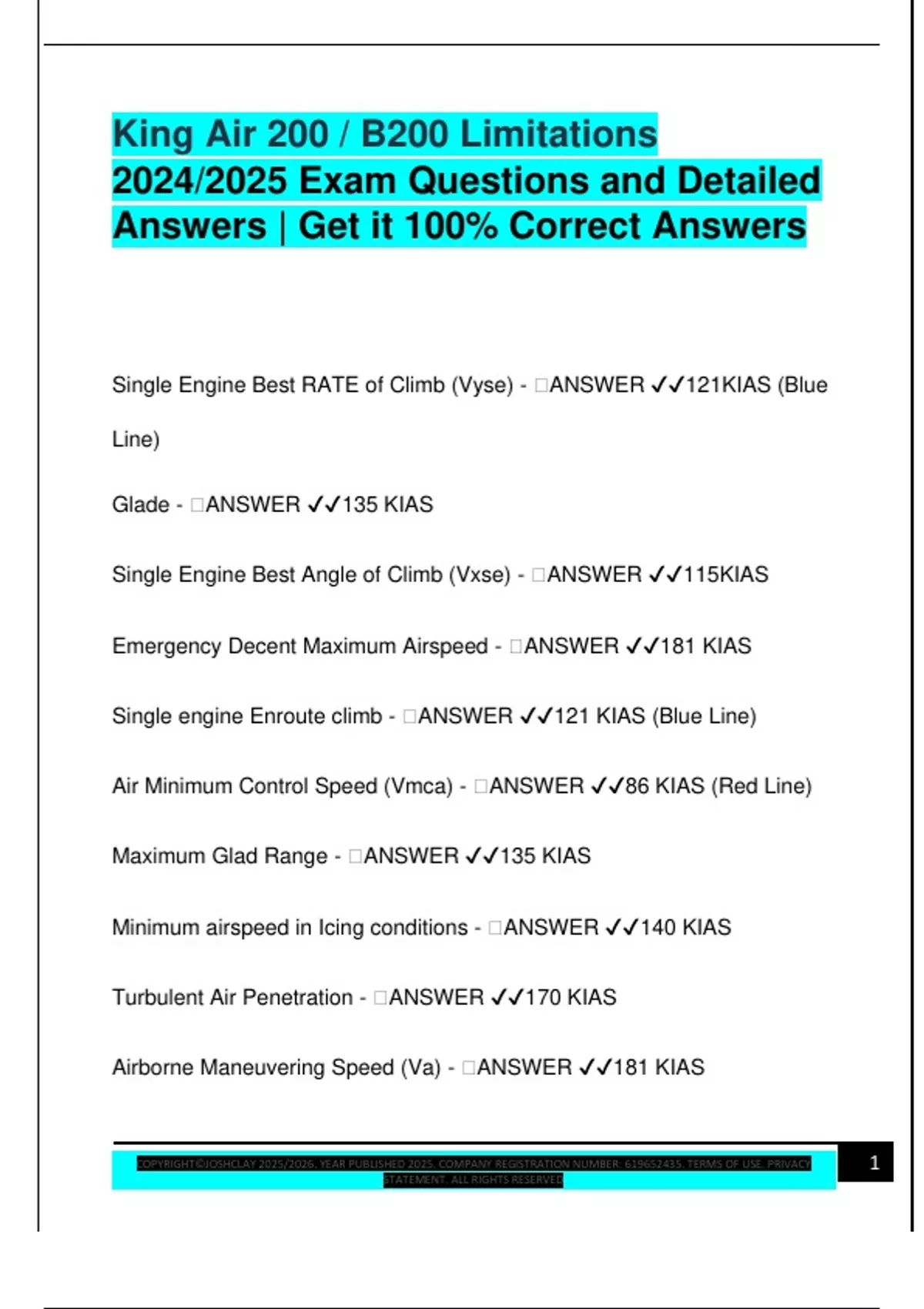 Maximum Flap Extension 100% - 🧠ANSWER ✔✔BE-200 146 KIAS (Top of