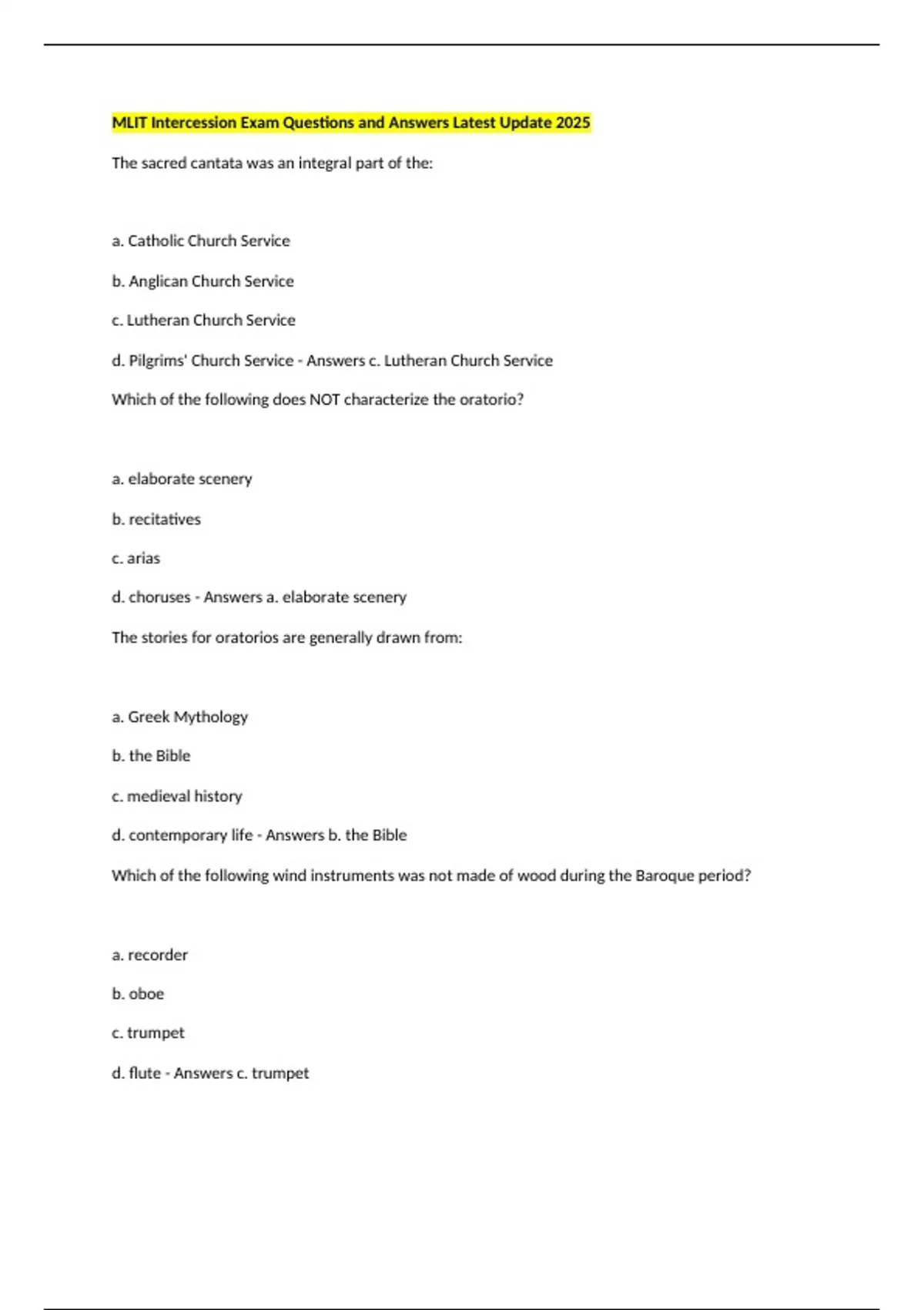 d. flute - Answers c. trumpet