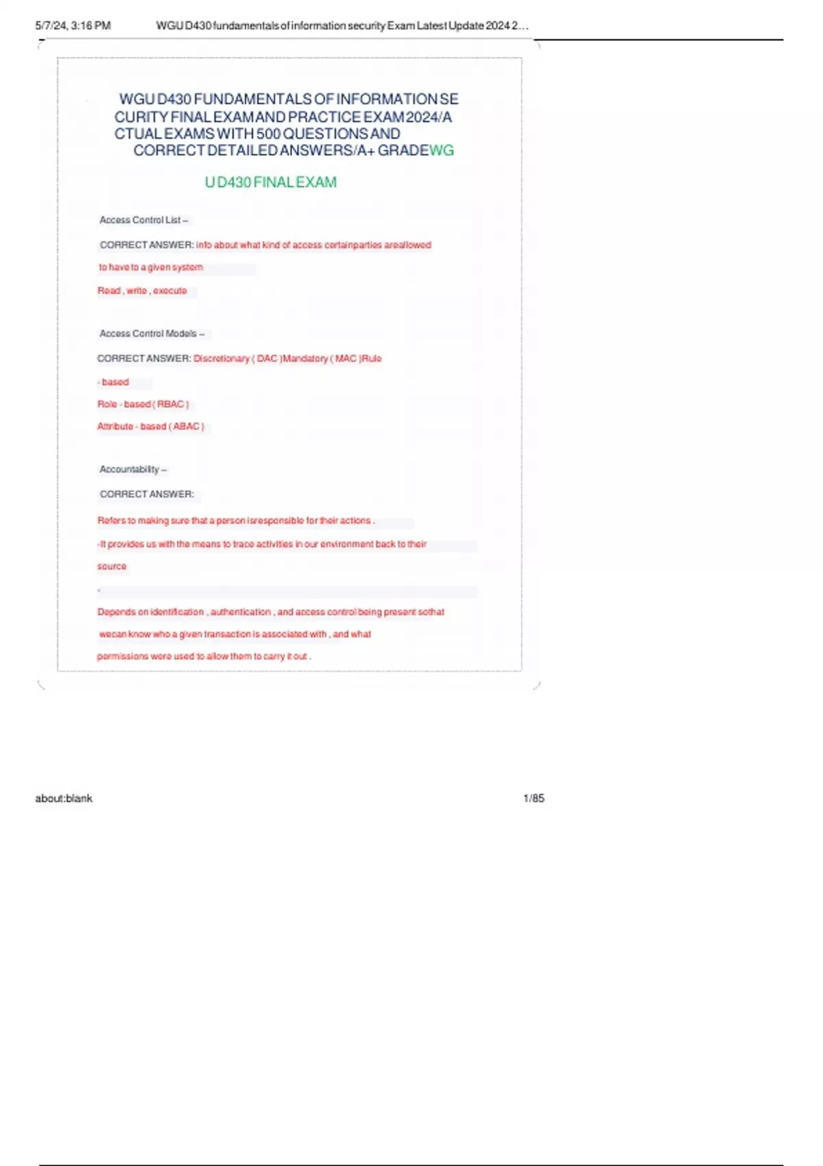 , 5/7/24,j3:16jPM WGUjD430jfundamentalsjofjinformationjsecurityjExamjLatestjUpdatej2024j2…