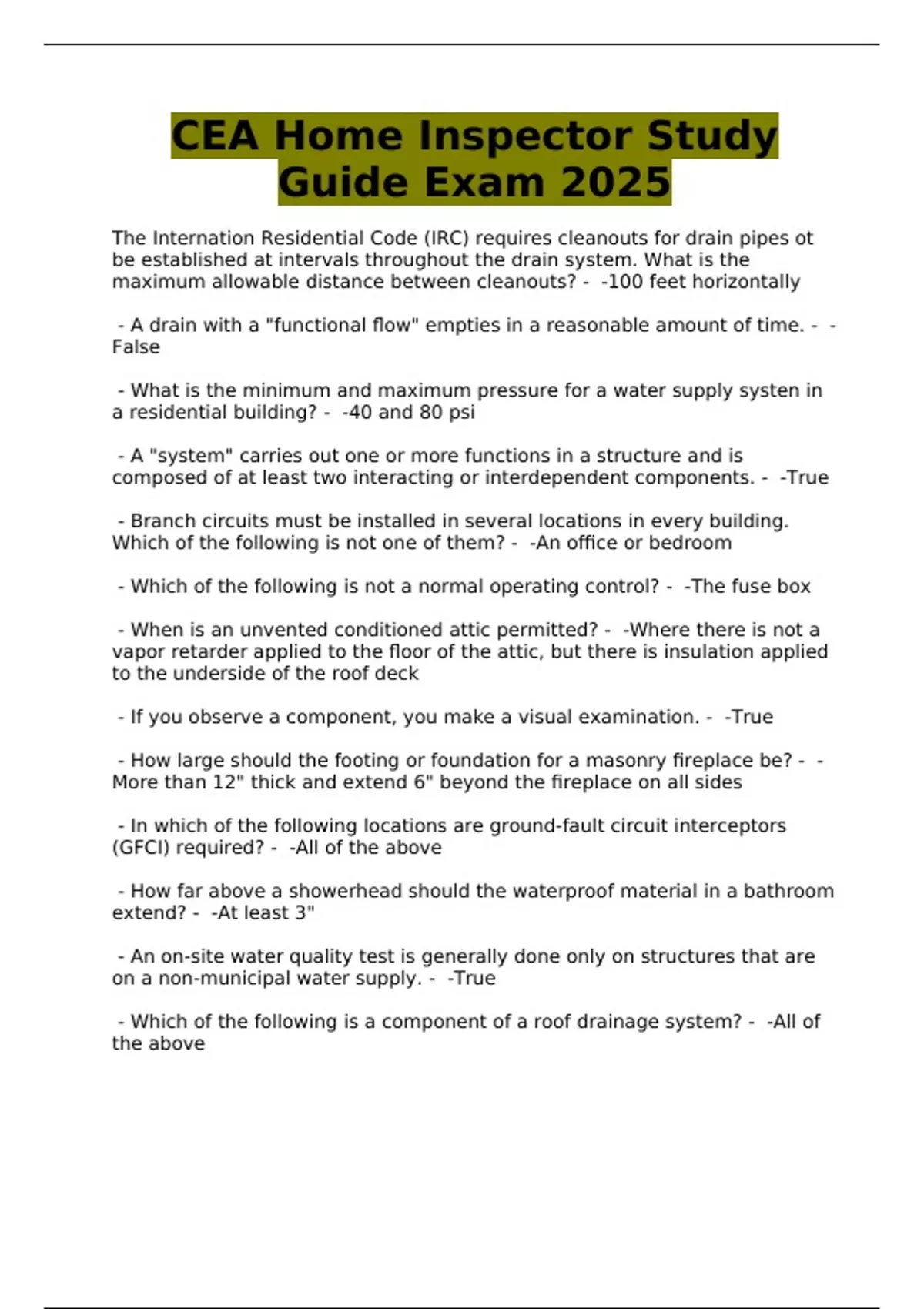 CEA Home Inspector Study Guide Exam 2025