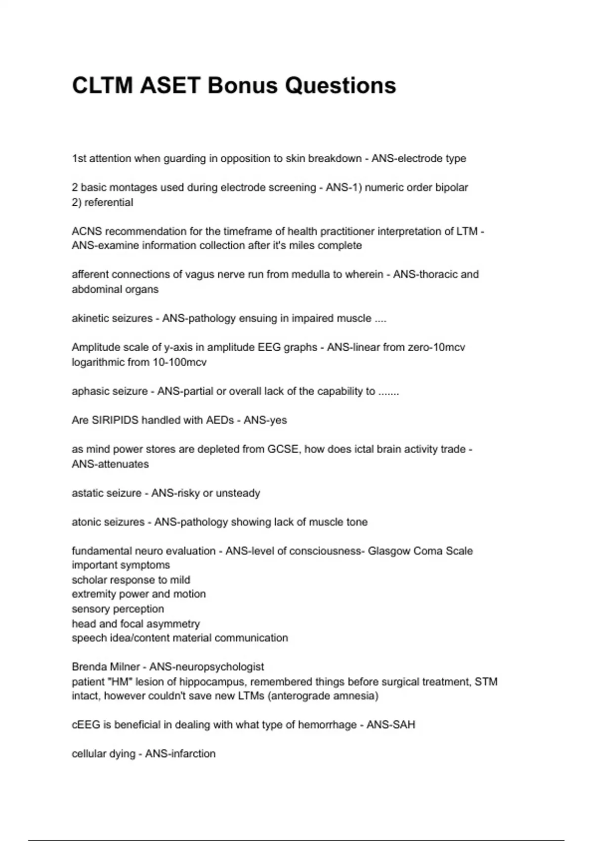 CLTM ASET Bonus QUESTIONS WITH DETAILED VERIFIED ANSWERS (100% CORRECT ANSWERS) /ALREADY GRADED A+