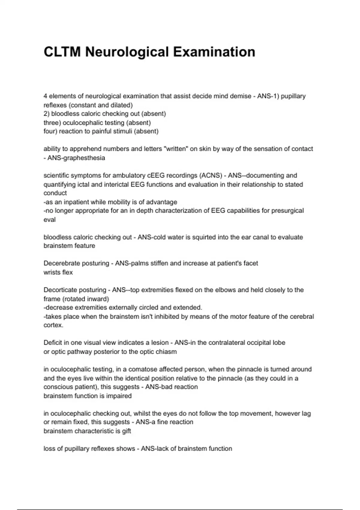 4 elements of neurological examination that assist decide mind demise - ANS-1) pupillary