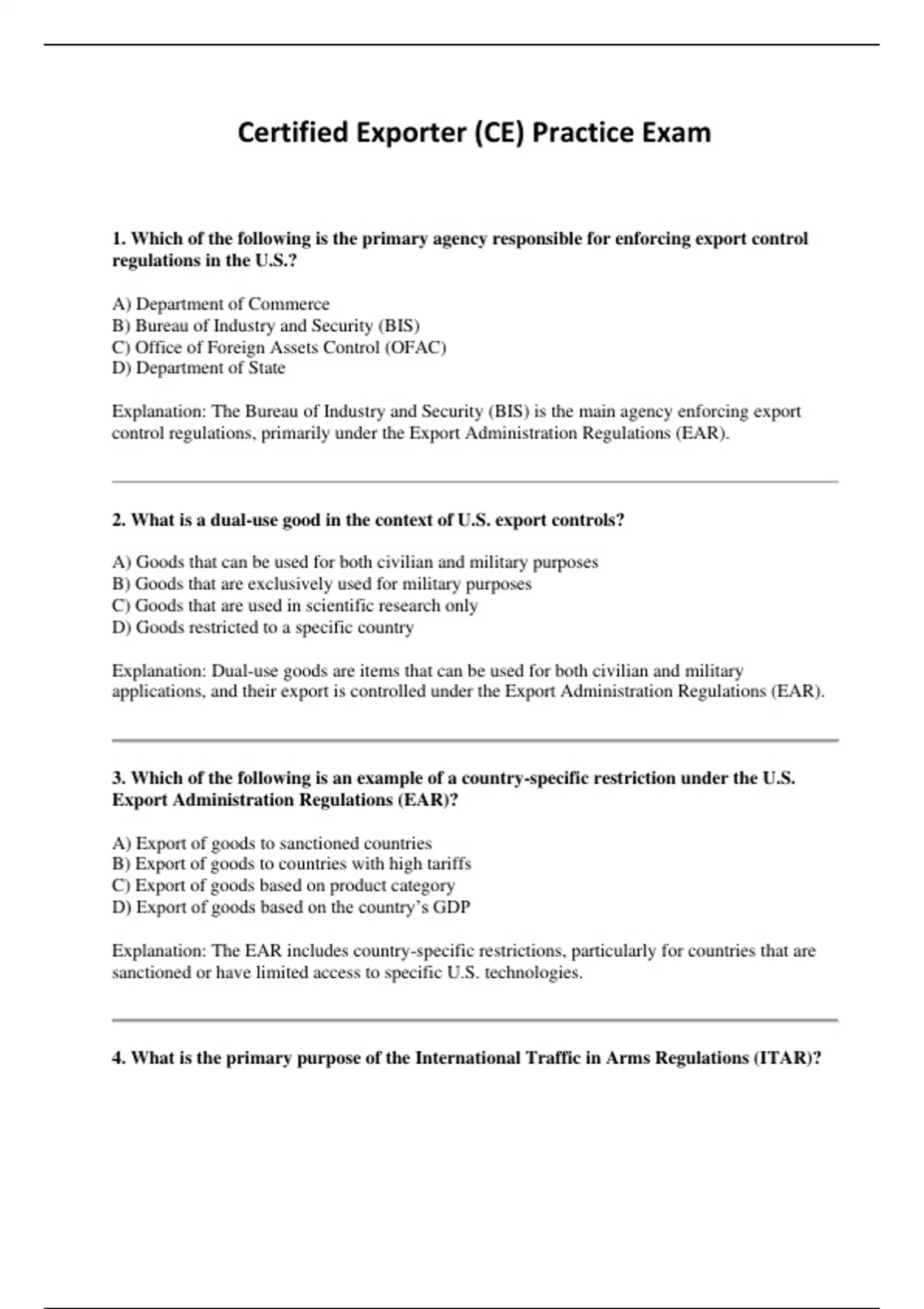 1. Which of the following is the primary agency responsible for enforcing export control