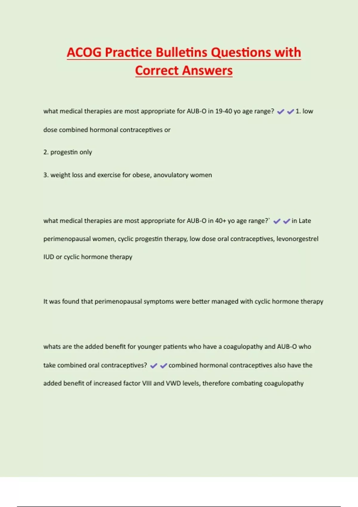 what medical therapies are most appropriate for AUB-O in 40+ yo age range?` in Late