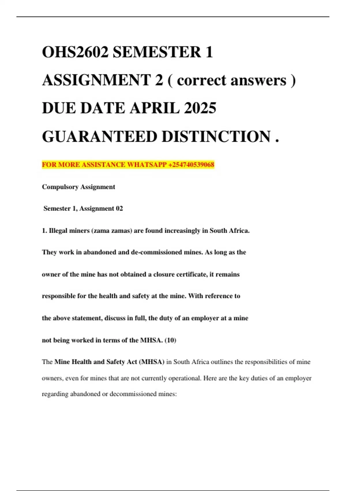 The Mine Health and Safety Act (MHSA) in South Africa outlines the responsibilities of mine
