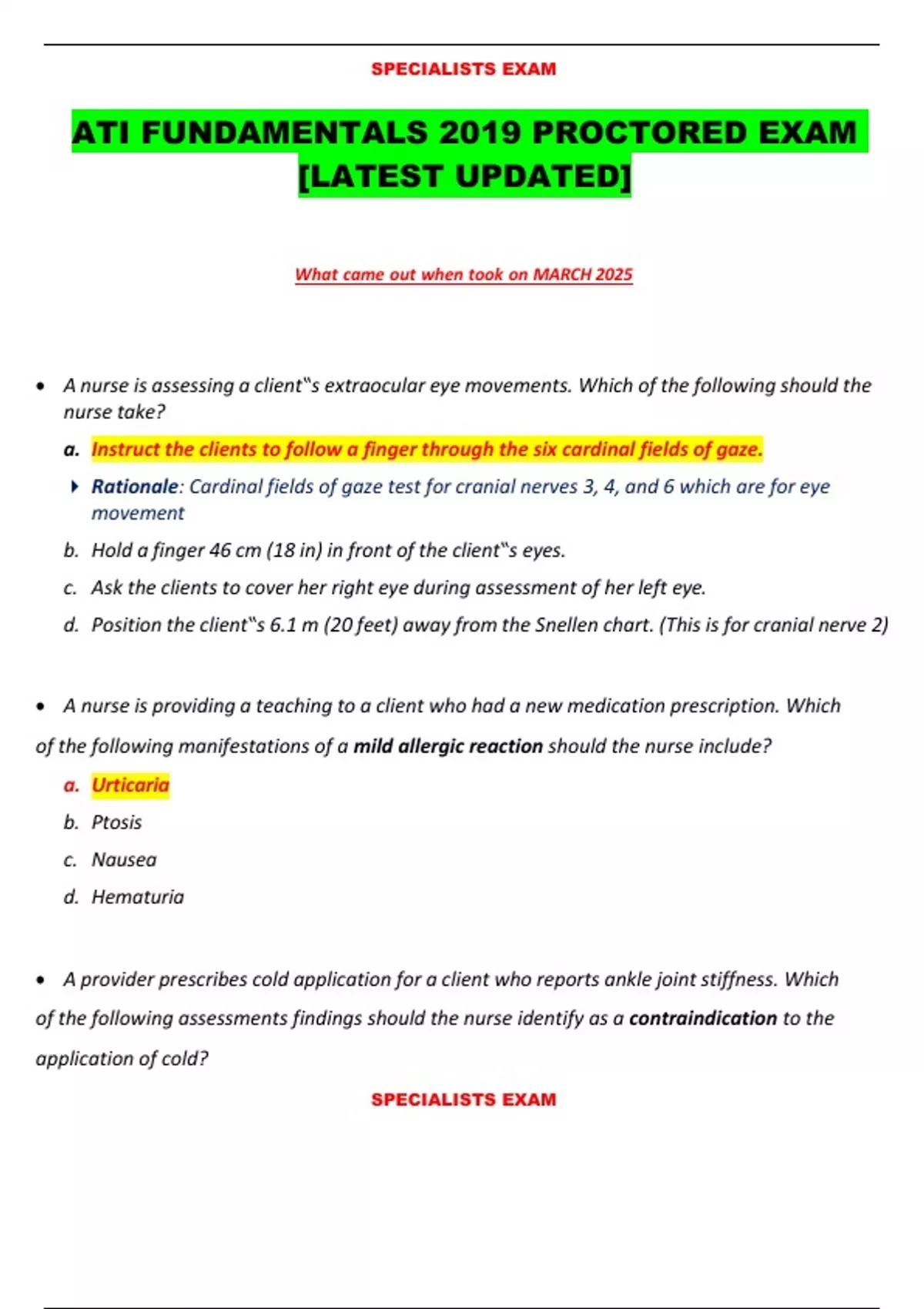 SPECIALISTS EXAM