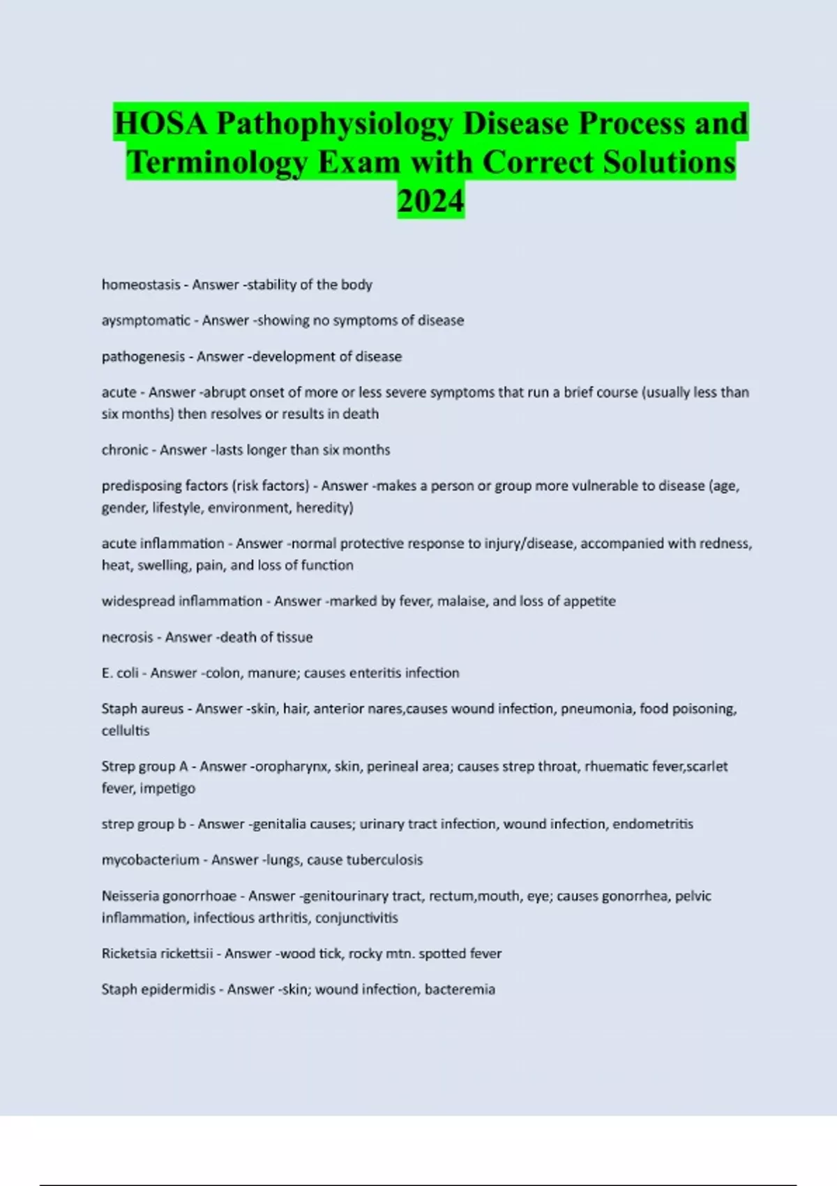 HOSA Pathophysiology Disease Process and Terminology Exam with Correct Solutions 2024/2025