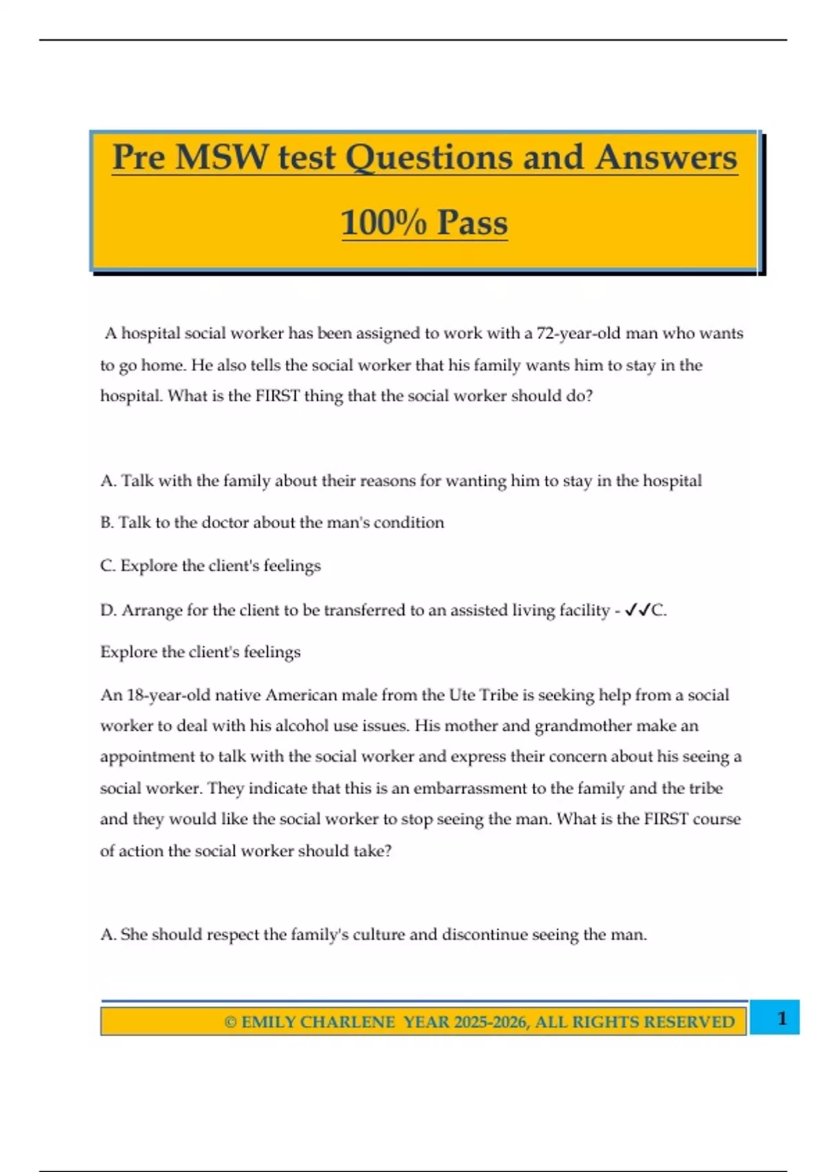 A hospital social worker has been assigned to work with a 72-year-old man who wants