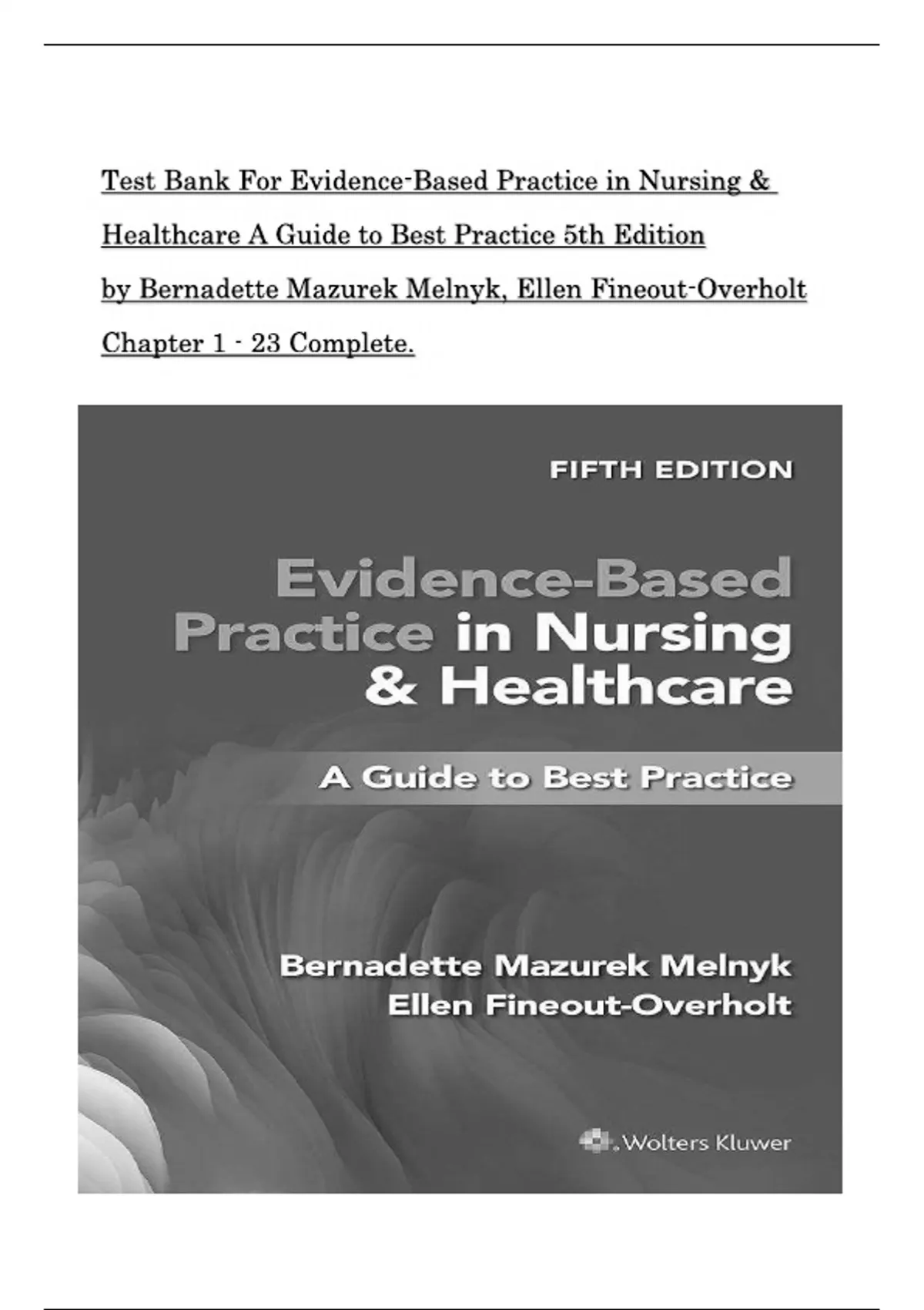 TEST BANK For Evidence-Based Practice in Nursing & Healthcare A Guide to Best Practice 5th Edition by Bernadette Mazurek Melnyk, Ellen Fineout-Overholt, Chapters 1 - 23, Complete Newest Version TEST BANK For Evidence-Based Practice in Nursing & Healthcare A Guide to Best Practice 5th Edition by Bernadette Mazurek Melnyk, Ellen Fineout-Overholt, Chapters 1 - 23, Complete Newest Version. Complete test bank that is ready to download in Pdf format
