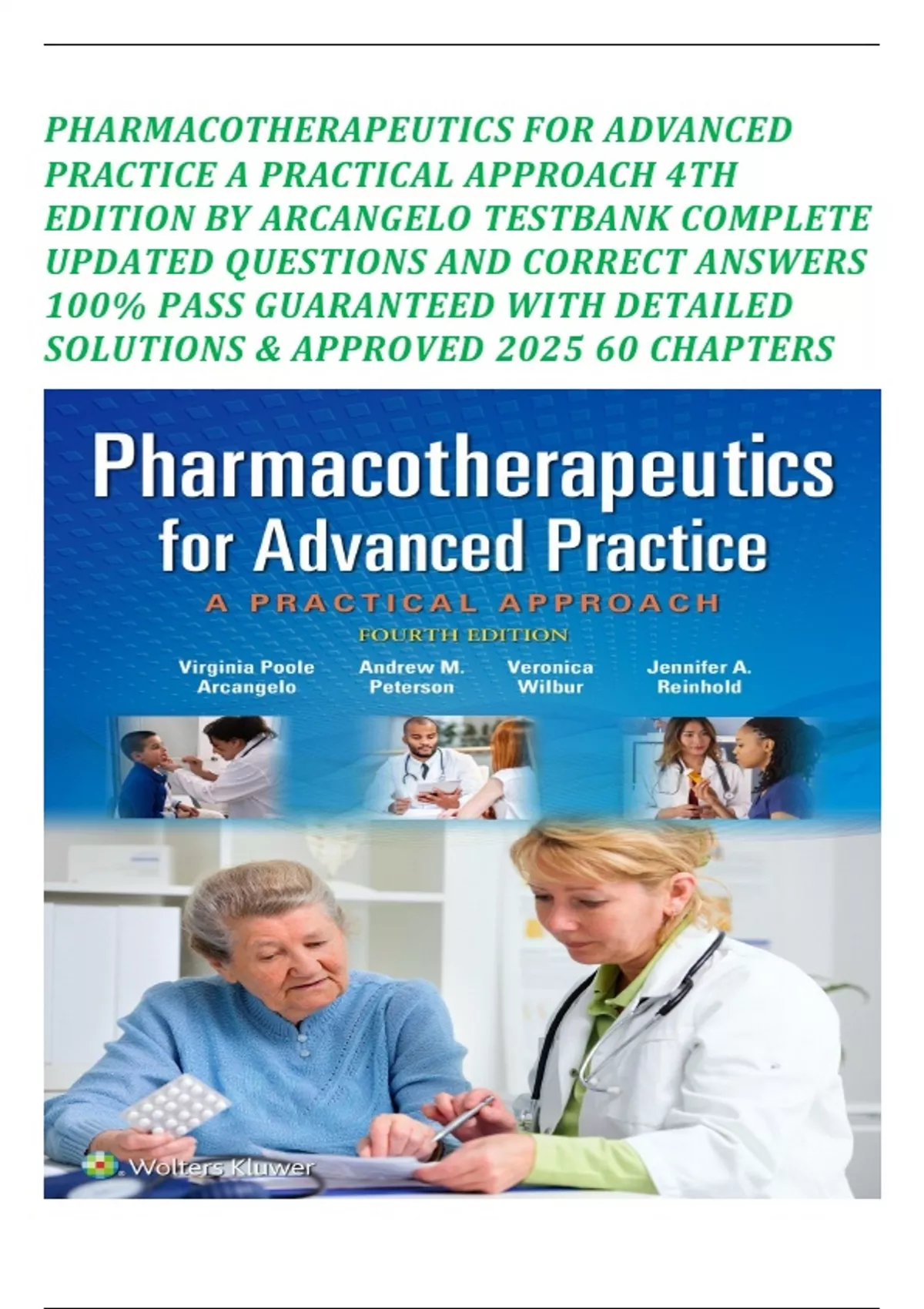 PHARMACOTHERAPEUTICS FOR ADVANCED PRACTICE A PRACTICAL APPROACH 4TH EDITION BY ARCANGELO TESTBANK COMPLETE UPDATED QUESTIONS AND CORRECT ANSWERS 100% PASS GUARANTEED WITH DETAILED SOLUTIONS & APPROVED 2025 60 CHAPTERS