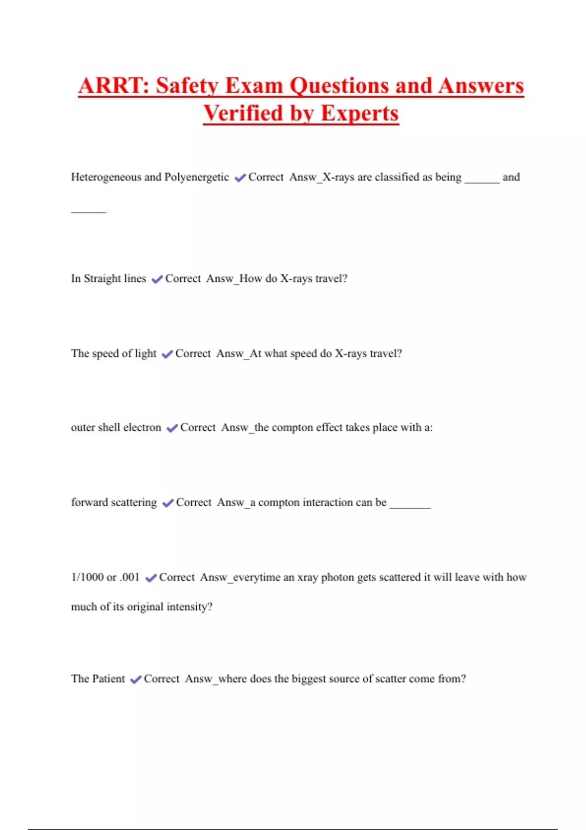 ARRT: Safety Exam Questions and Answers