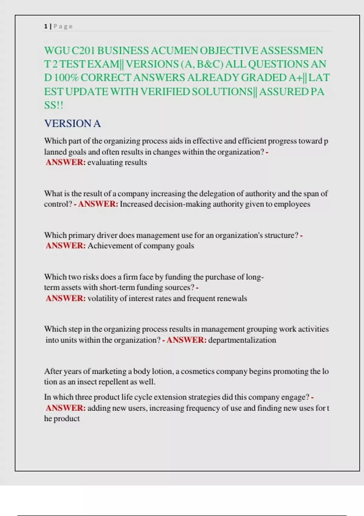 WGU C201 BUSINESS ACUMEN OBJECTIVE ASSESSMEN