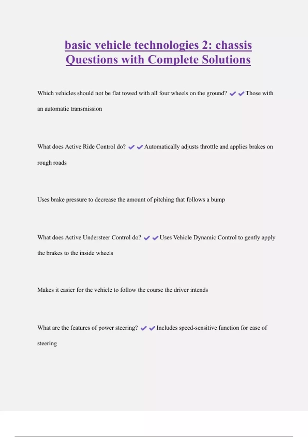 basic vehicle technologies 2: chassis Questions with Complete Solutions