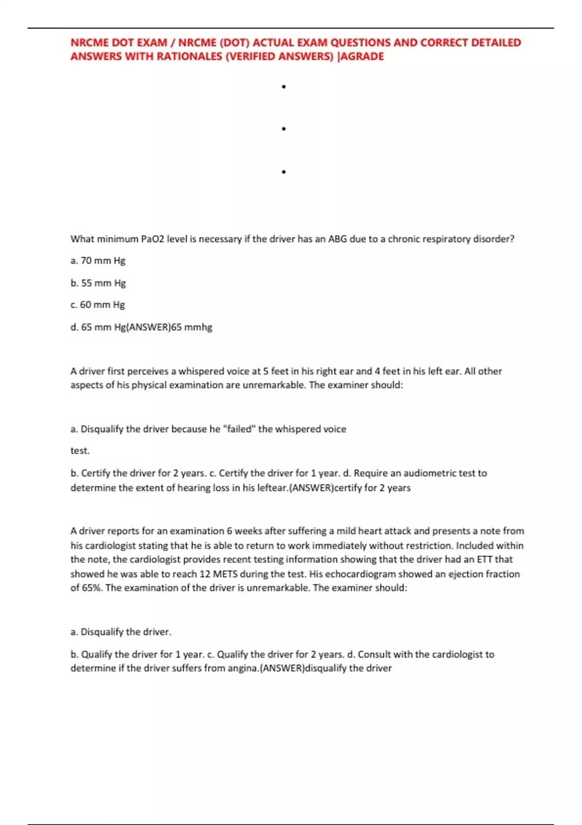 NRCME DOT EXAM / NRCME (DOT) ACTUAL EXAM QUESTIONS AND CORRECT DETAILED