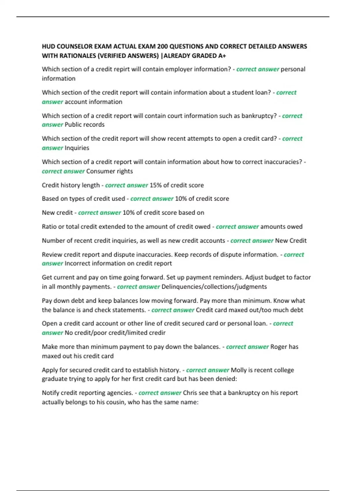 Credit history length - correct answer 15% of credit score