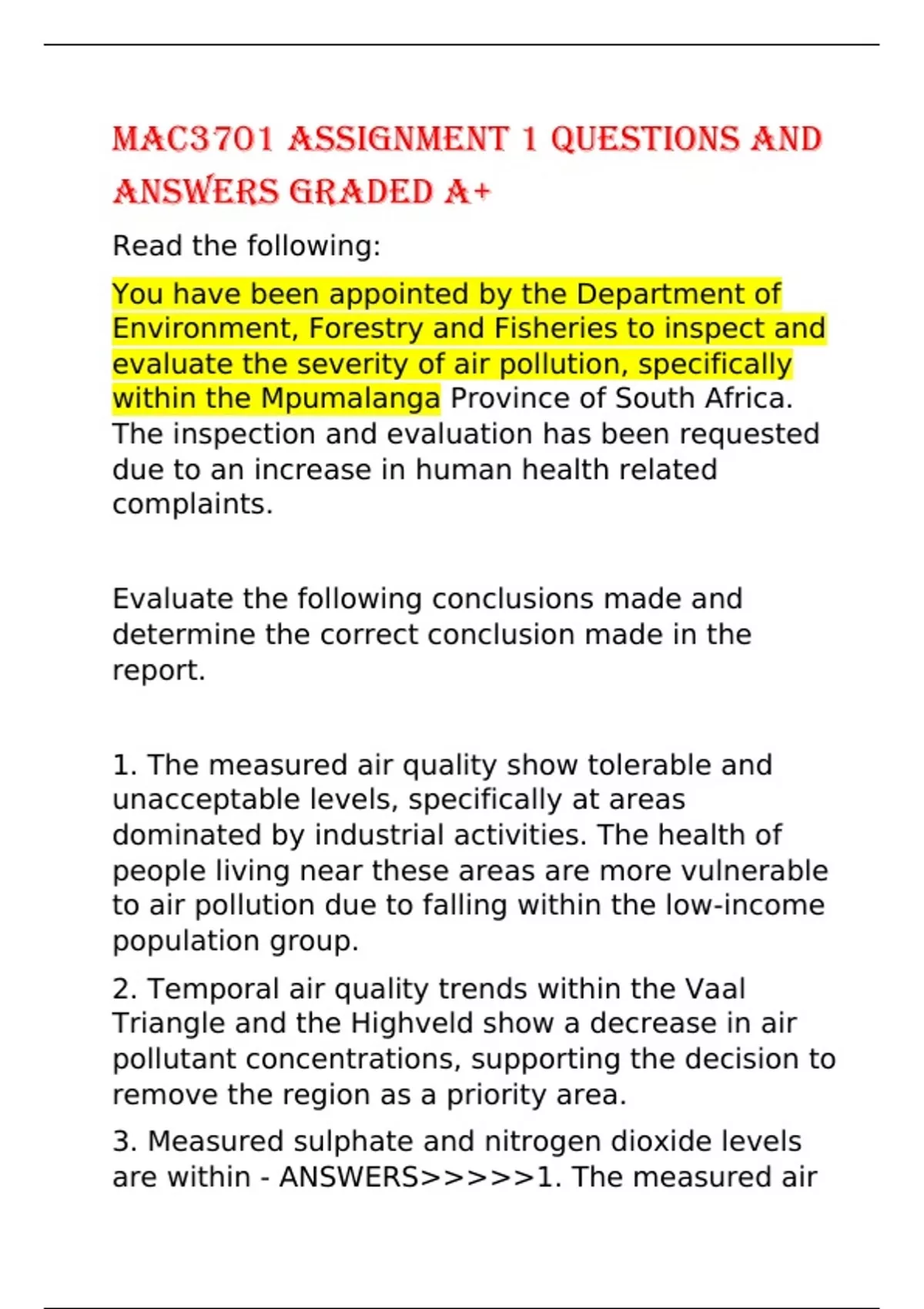 ANSWERS GRADED A+