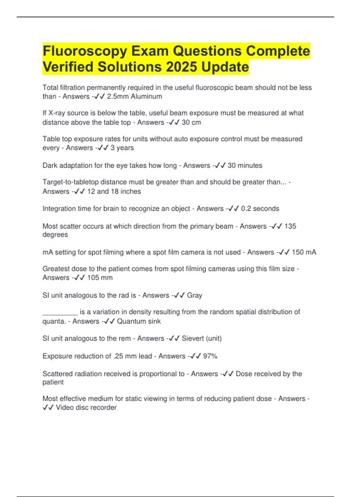 Fluoroscopy Exam Questions Complete Verified Solutions 2025 Update