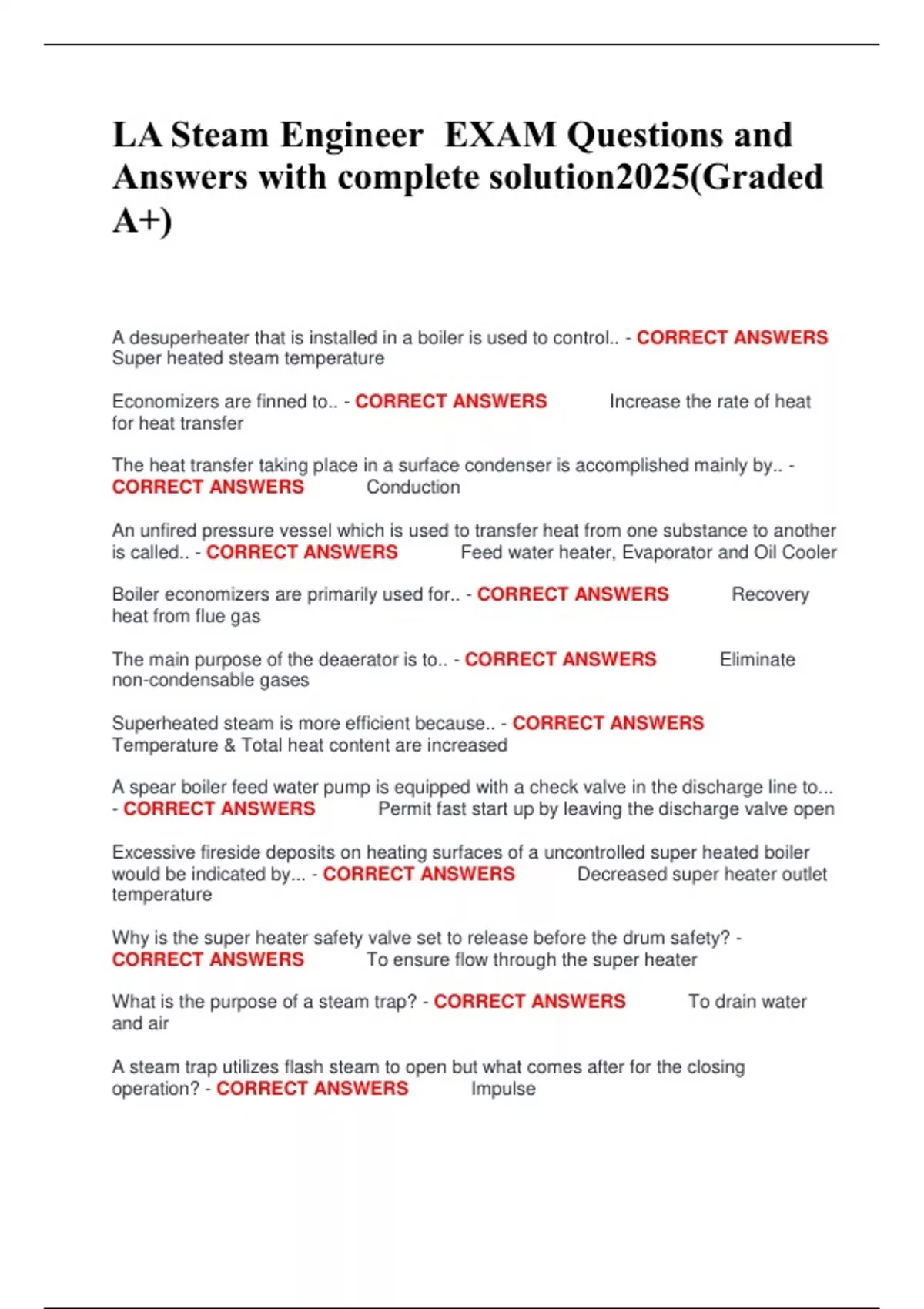 A desuperheater that is installed in a boiler is used to control.. - CORRECT ANSWERS