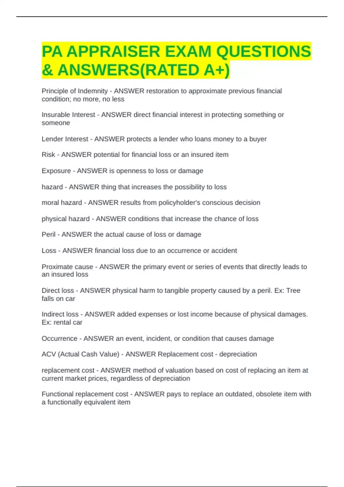 PA APPRAISER EXAM QUESTIONS & ANSWERS(RATED A+)