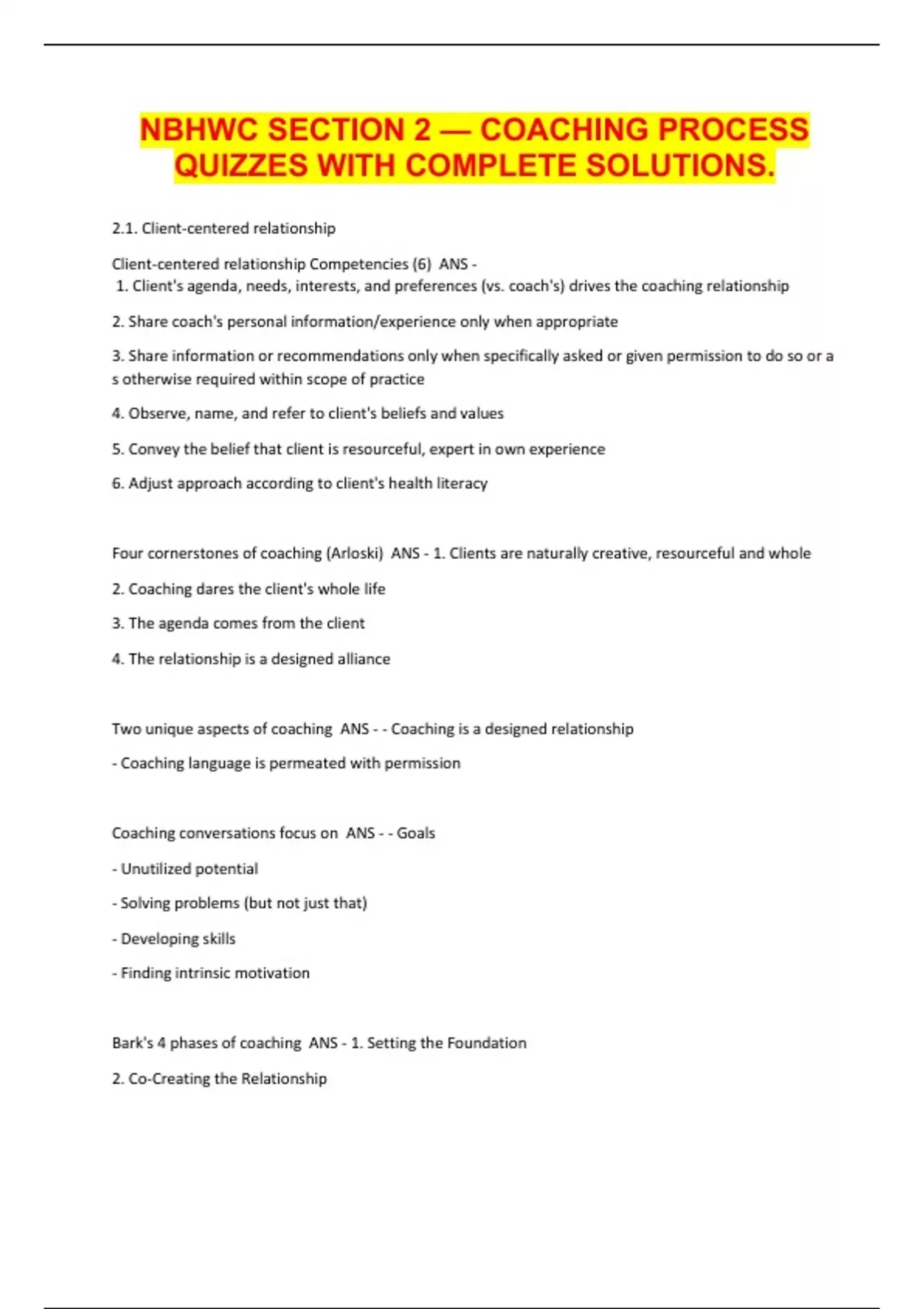NBHWC SECTION 2 — COACHING PROCESS QUIZZES WITH COMPLETE SOLUTIONS.