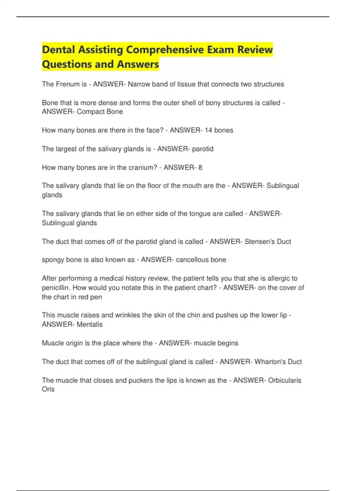 The Frenum is - ANSWER- Narrow band of tissue that connects two structures