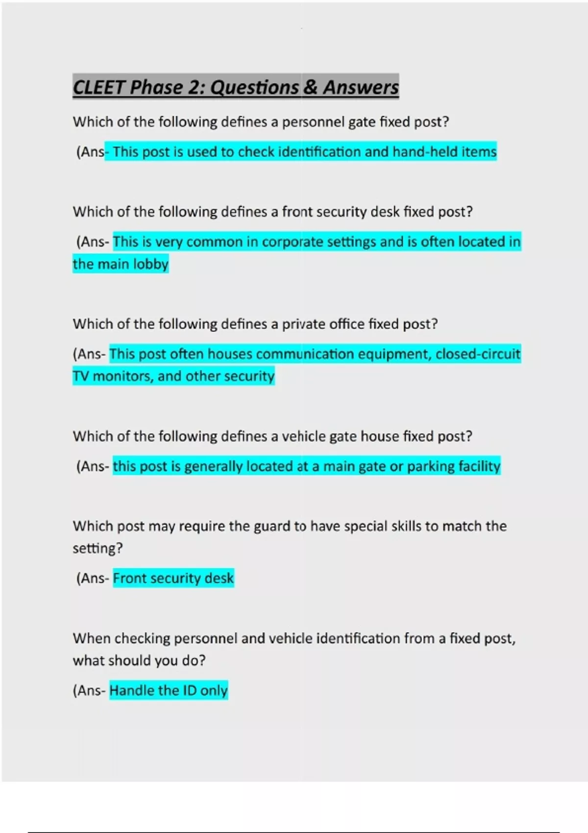 CLEET Phase 2: Questions & Answers: Guaranteed A+ Guide Solution