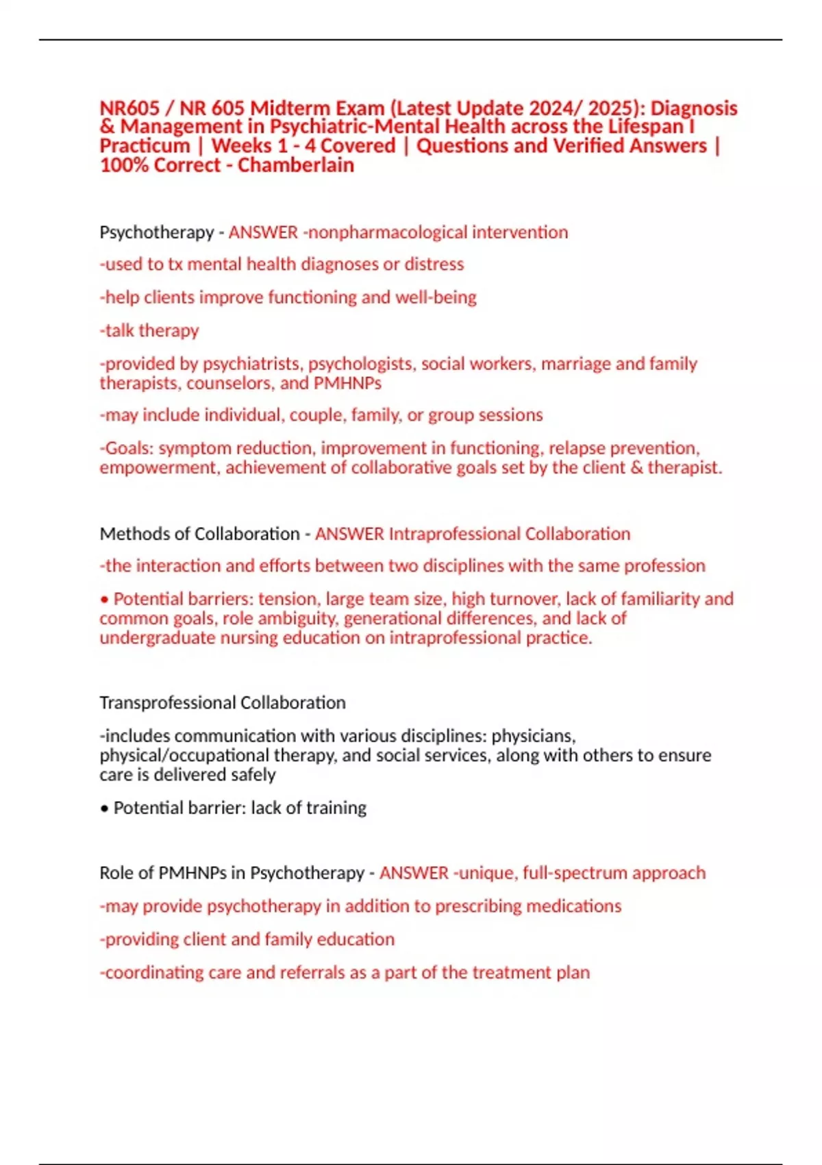 NR605 / NR 605 Midterm Exam (Latest Update 2024/ 2025): Diagnosis & Management in Psychiatric-Mental Health across the Lifespan I Practicum | Weeks 1 - 4 Covered | Questions and Verified Answers | 100% Correct - Chamberlain