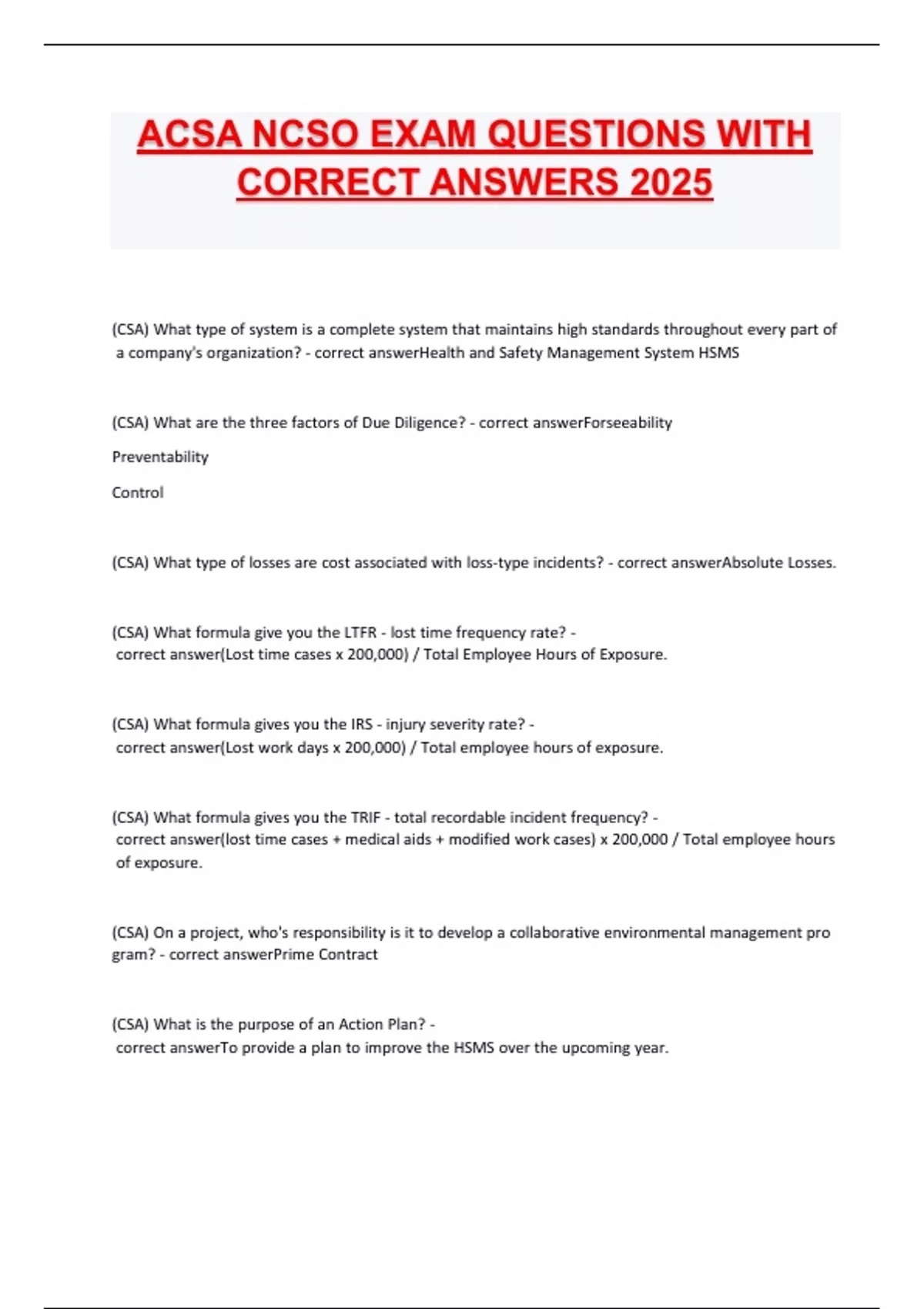 ACSA NCSO EXAM QUESTIONS WITH CORRECT ANSWERS 2025